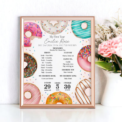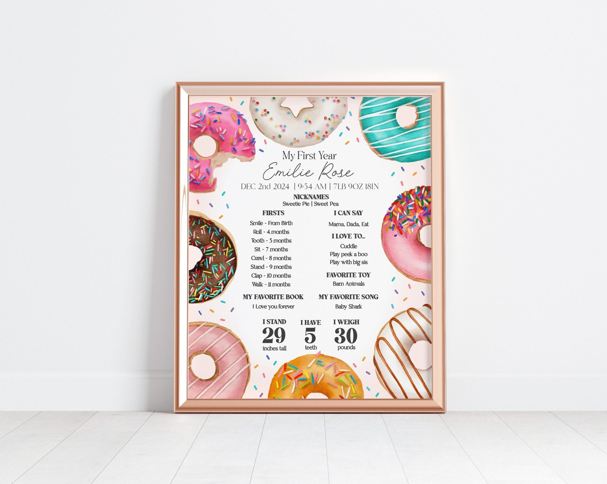 Donut Sprinkles My First Year Milestone Sign Template, Sweet One Donut 1st Birthday for Girl, Sweet Celebration Sprinkled With Love Birthday