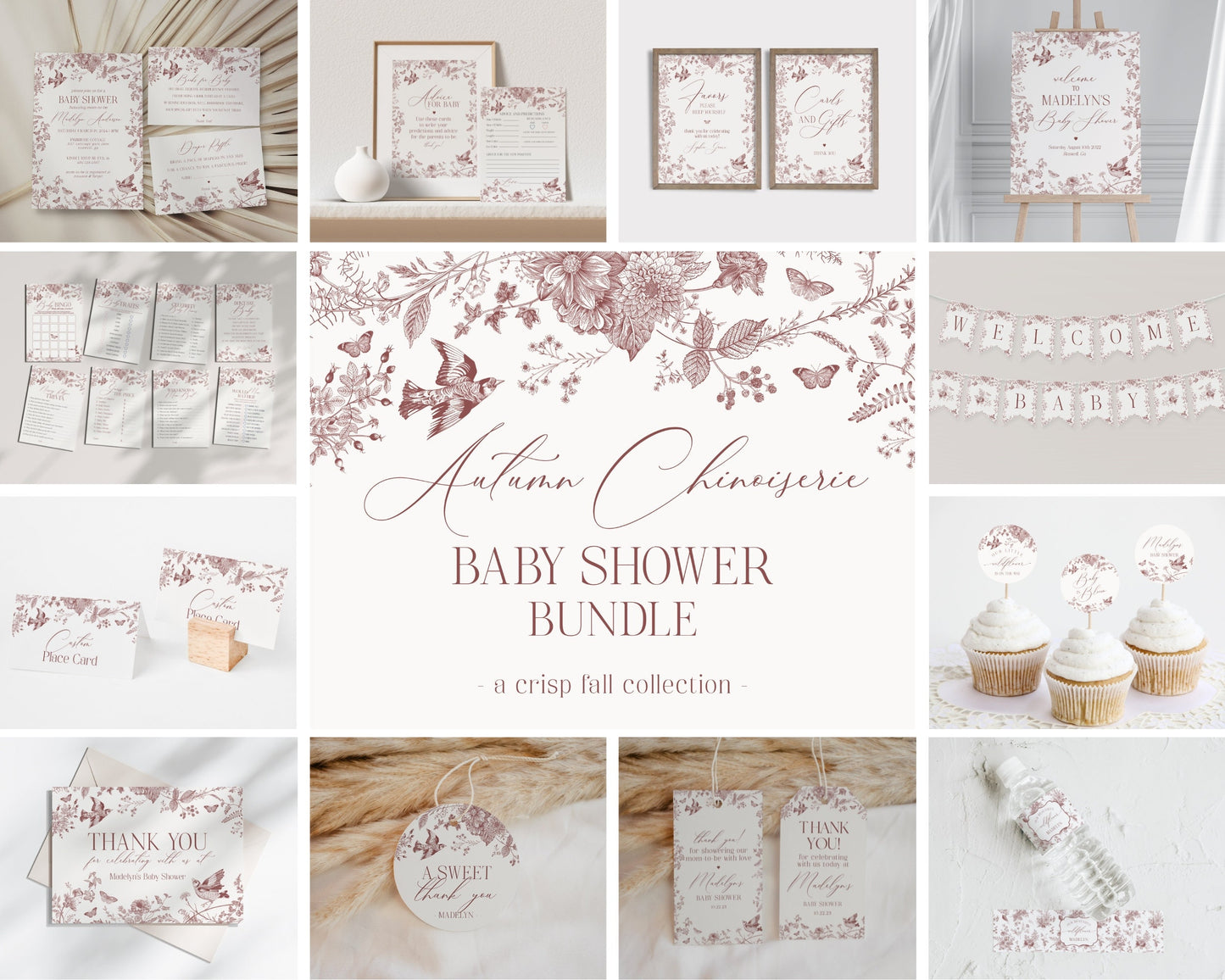 Elevate your autumn celebrations with our Fall Toile party decor, featuring detailed floral burgundy toile on a warm white background. This French-inspired Chinoiserie design exudes elegance and sophistication, perfect for fall gatherings in September, October, or November. The intricate toile de Jouy pattern captures the crisp, cozy essence of fall, creating a charming ambiance for any event.
