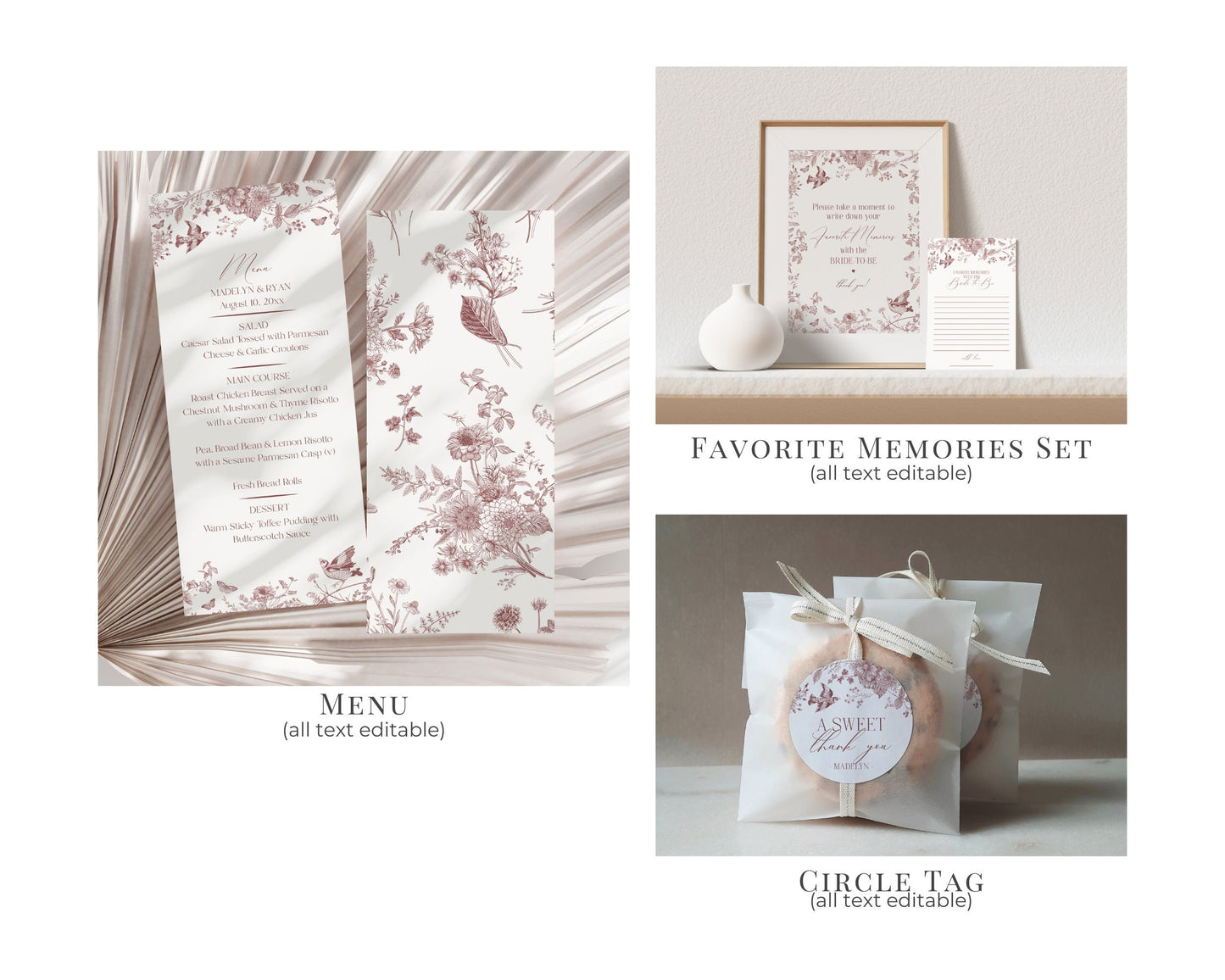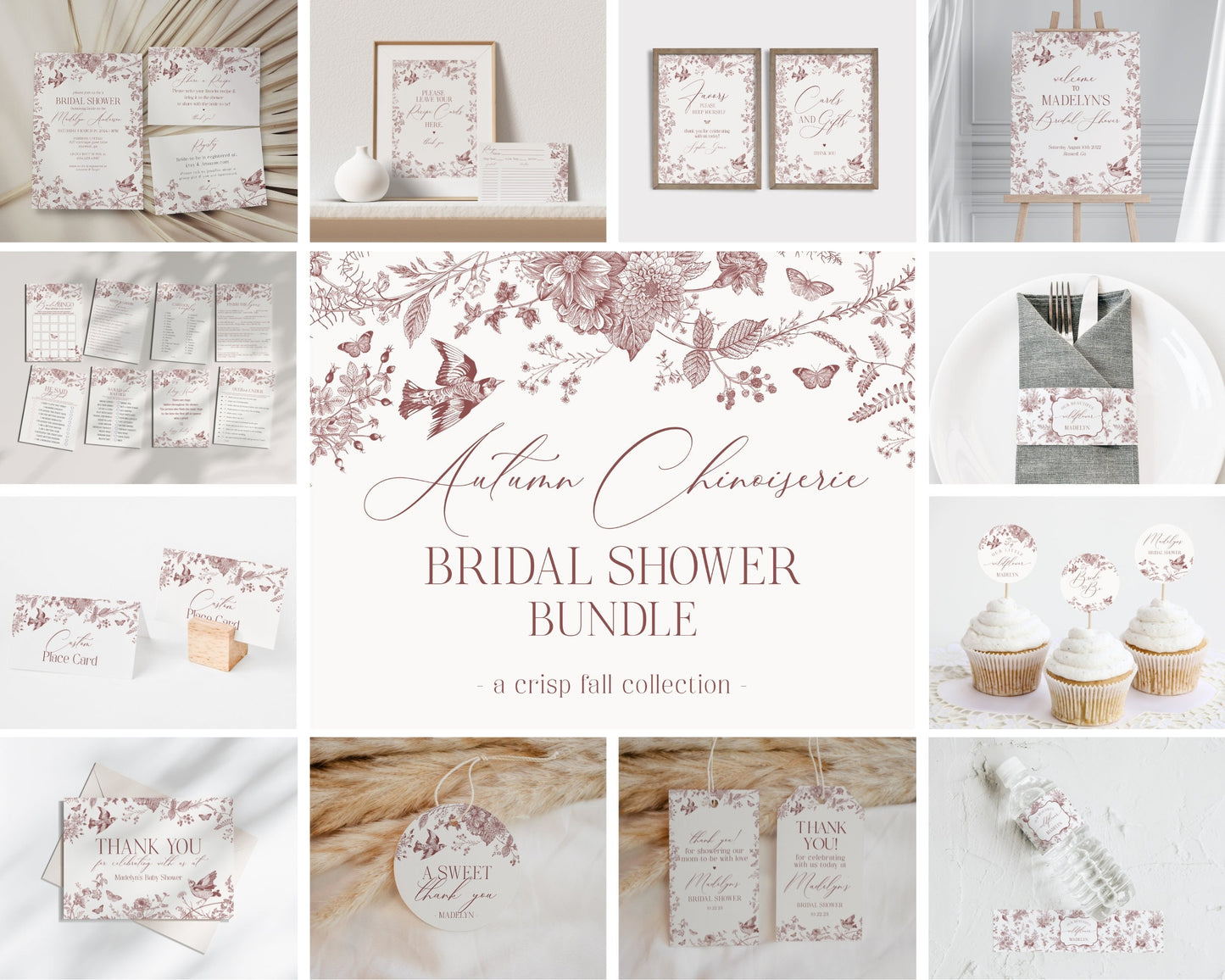 Elevate your autumn celebrations with our Fall Toile party decor, featuring detailed floral burgundy toile on a warm white background. This French-inspired Chinoiserie design exudes elegance and sophistication, perfect for fall gatherings in September, October, or November. The intricate toile de Jouy pattern captures the crisp, cozy essence of fall, creating a charming ambiance for any event.
