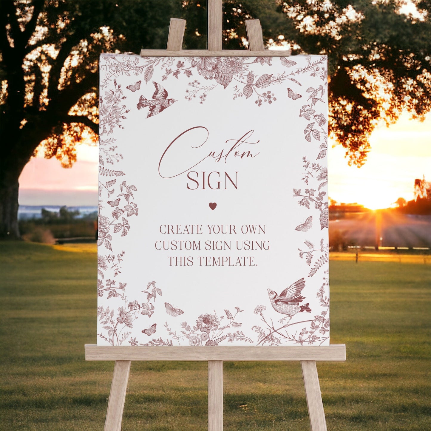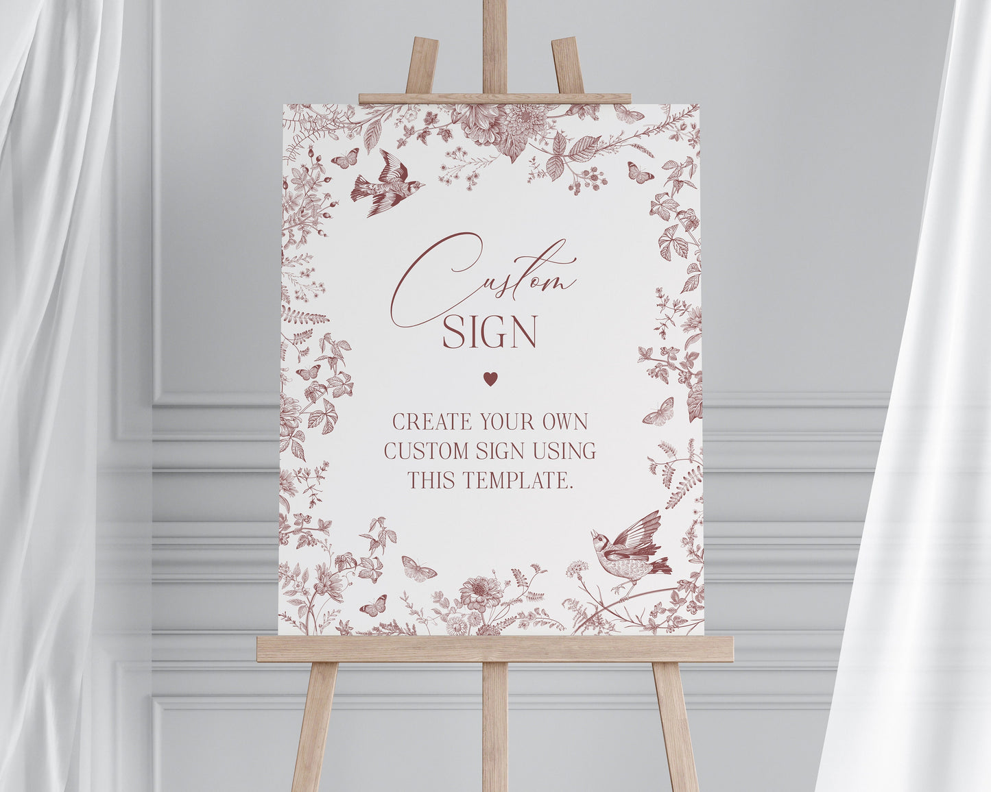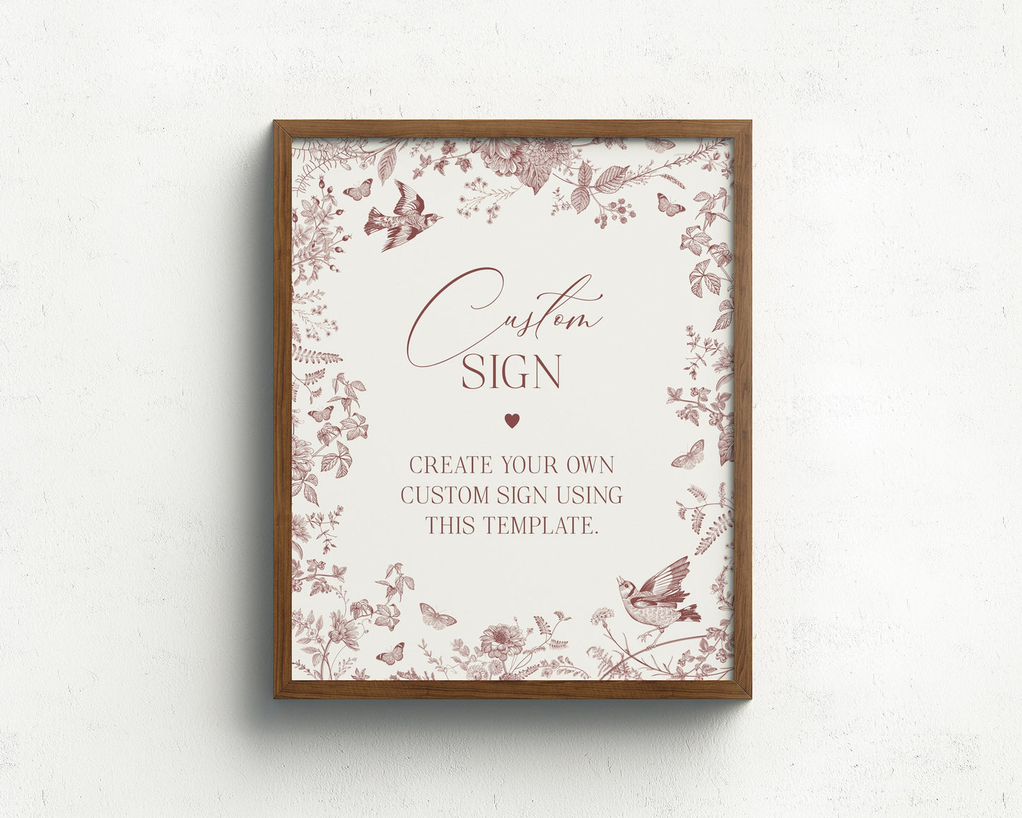 Fall Toile Custom Sign Printable Party Decor for Baby or Bridal Shower, Burgundy chinoiserie decor September October French Toile De Jouy