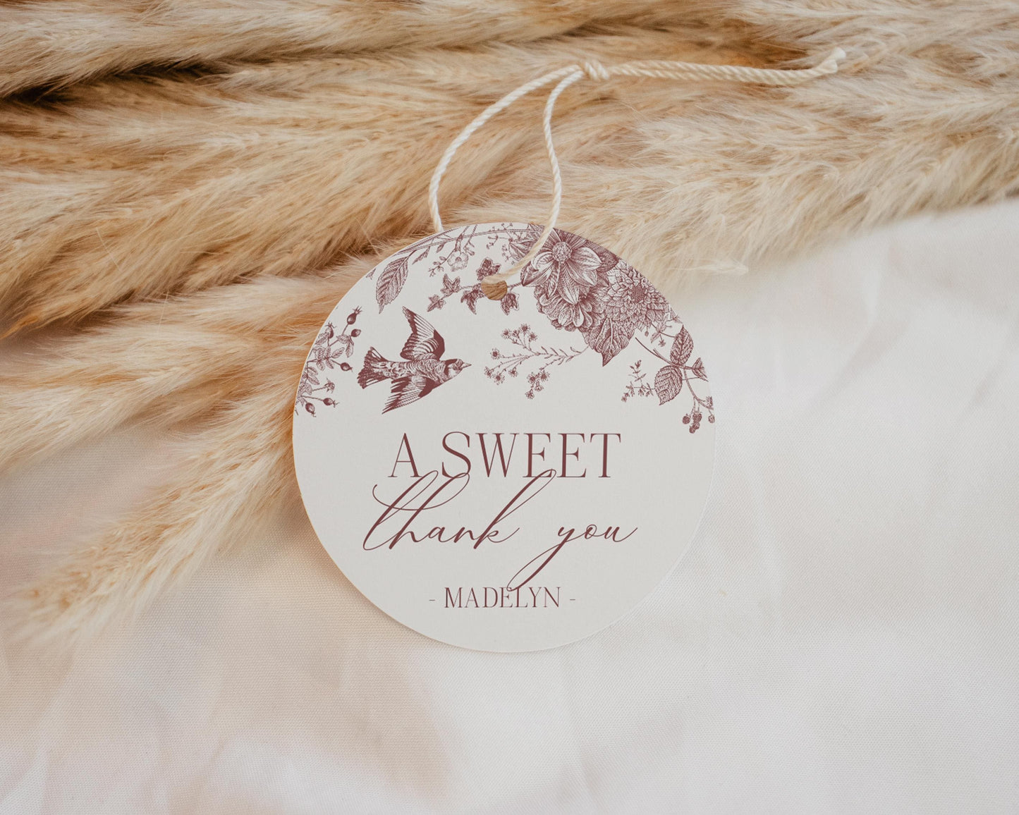 Fall Toile De Jouy Bridal Shower Favor Tags Printable Template, Burgundy Chinoiserie Bridal Brunch for September October November French
