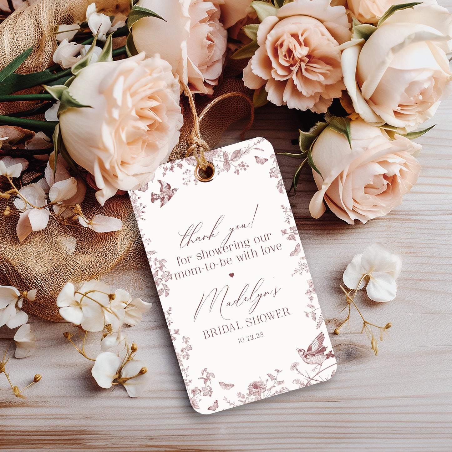 Fall Toile De Jouy Bridal Shower Favor Tags Printable Template