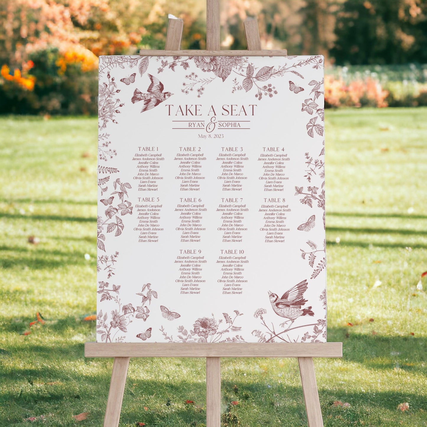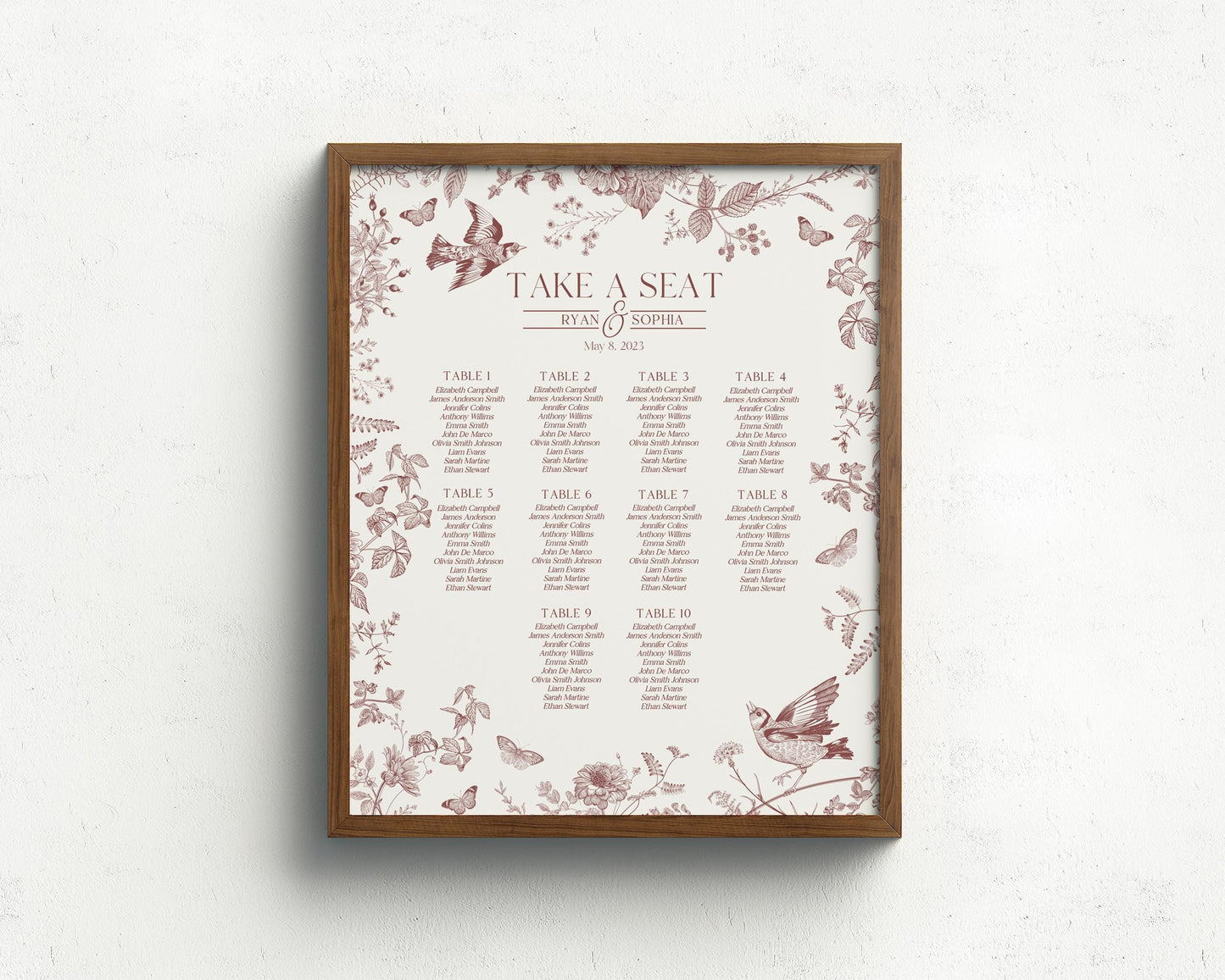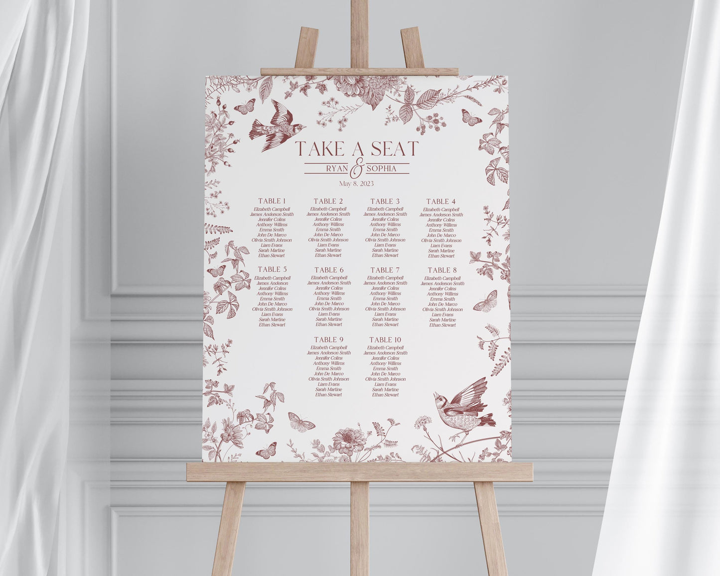 Fall Toile Custom Sign Printable Party Decor for Baby or Bridal Shower, Burgundy chinoiserie decor September October French Toile De Jouy