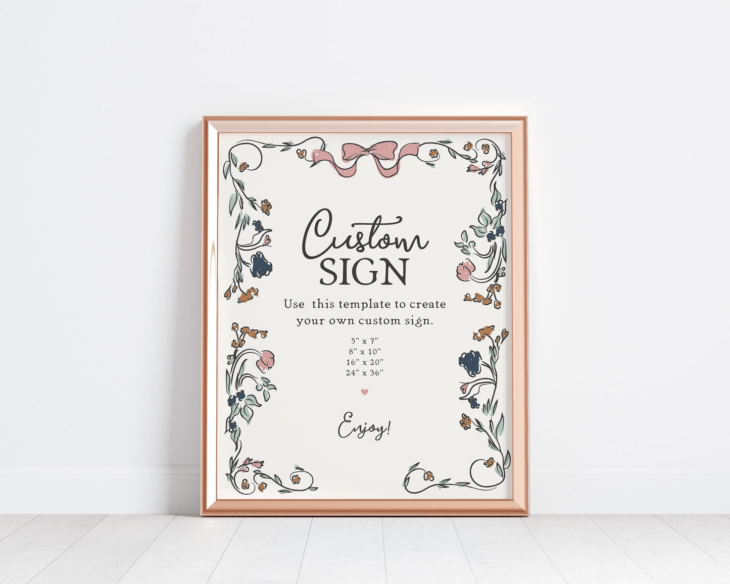 French Floral Custom Sign, Printable Party Decor for Baby or Bridal Shower, Boho French Garden Party Decor Illustrated Wildflower Doodle
