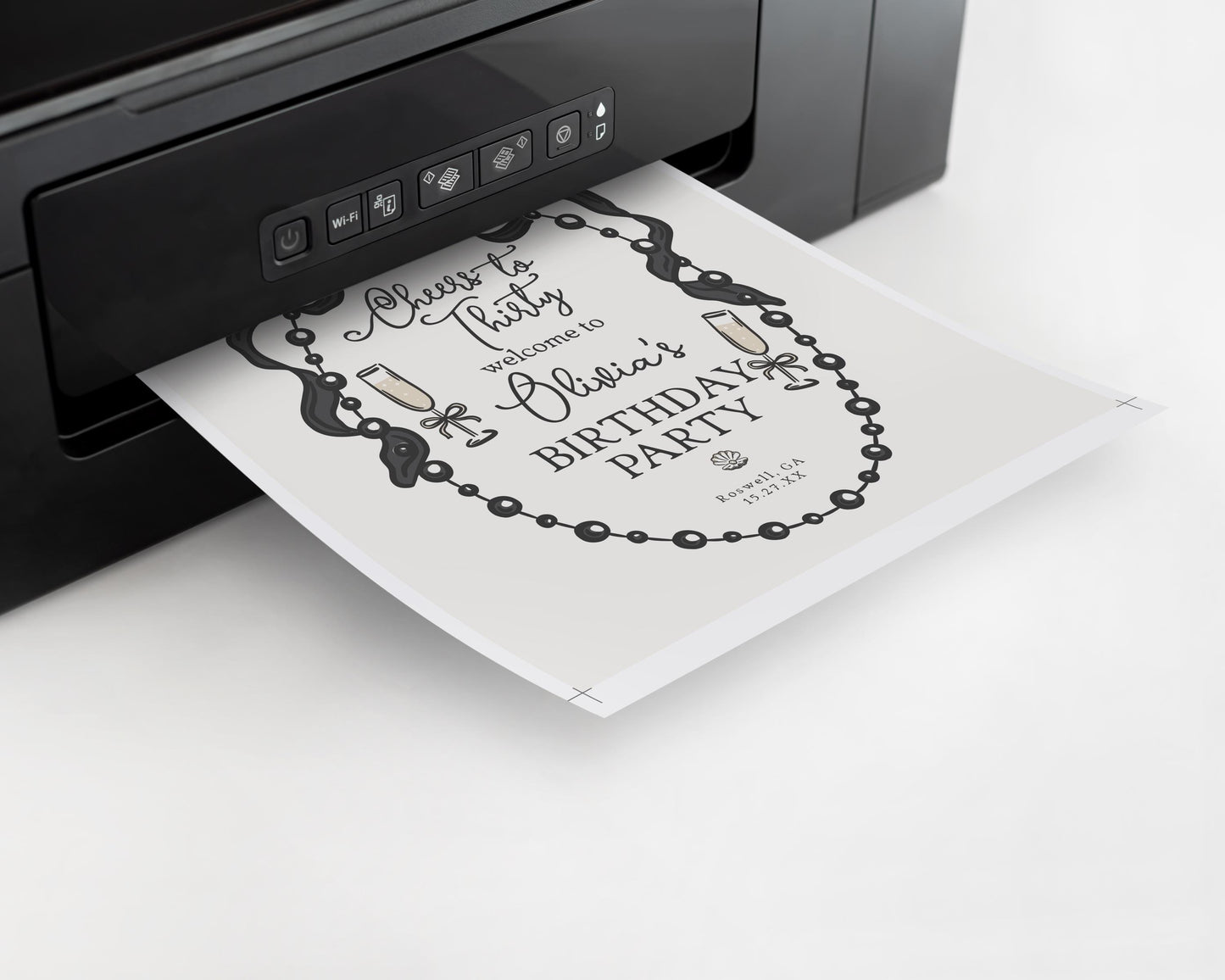 French Theme Pearl Share Memories with Birthday Girl Printable Template, Cheers Whimsical Ribbon Black Bow Birthday Party 30th Bday WP1002