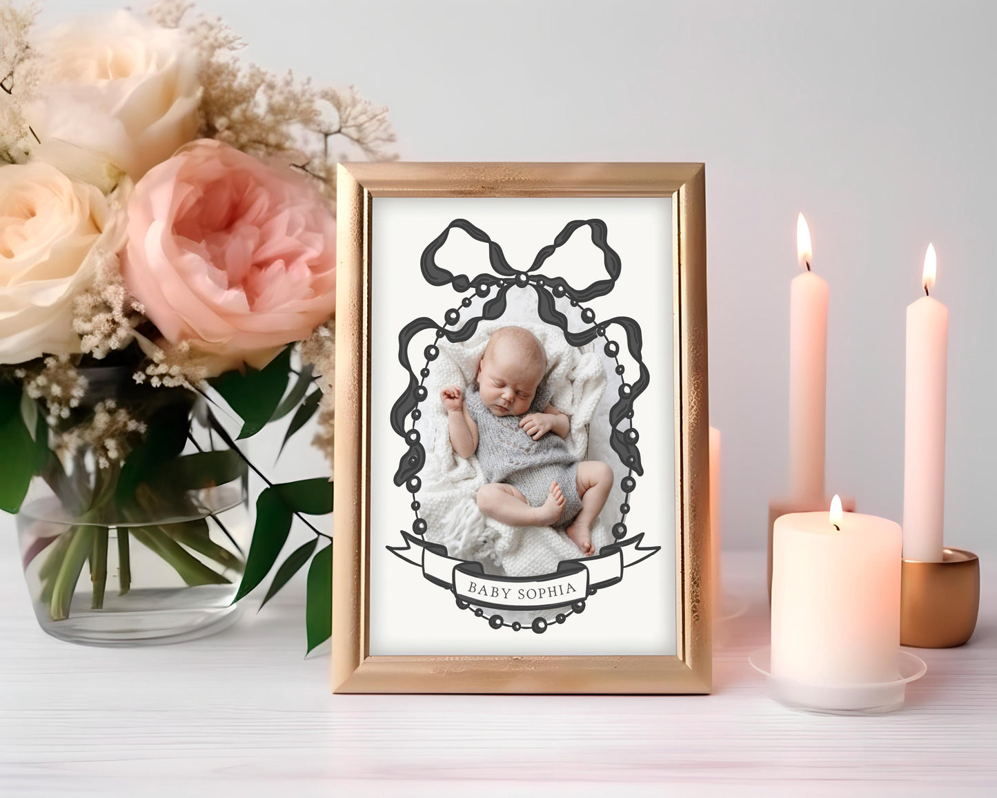 French Theme Little Pearl Baby Shower Invitation Printable Template, Whimsical Ribbon Black Bow Baby Sprinkle Decor Black and White WP1002