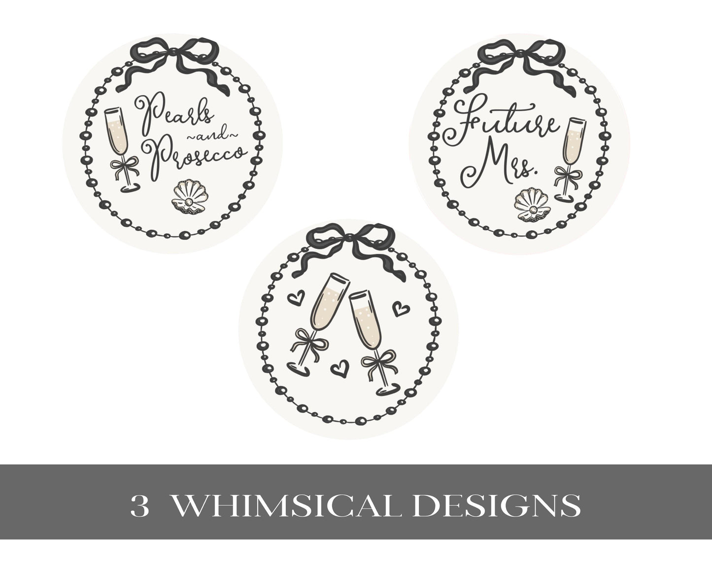 French Theme Pearls and Prosecco Bridal Shower Favor Tags Printable Template