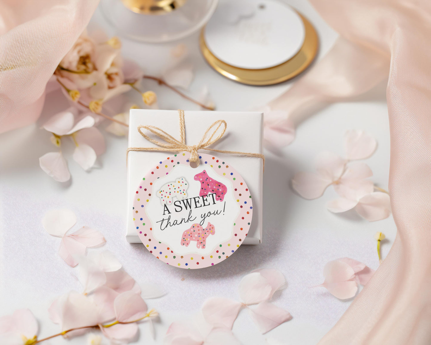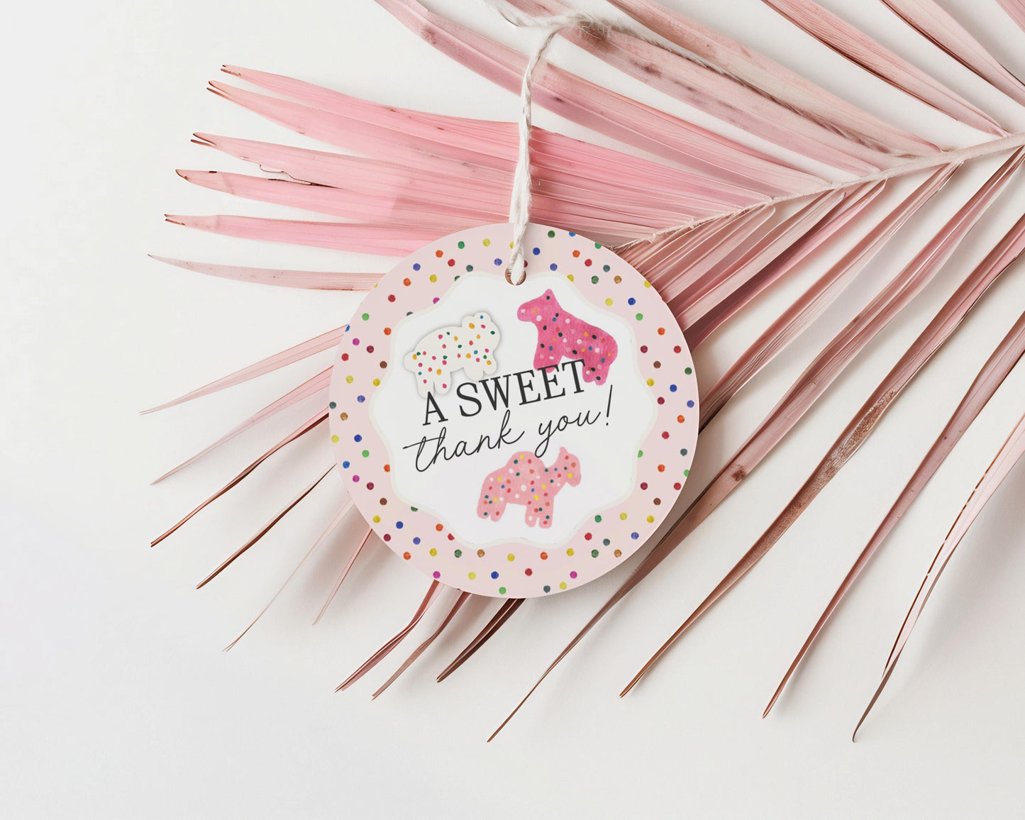 Frosted Animal Cookies Birthday Favor Tags Template, Calling Party Animals, sweet celebration retro circus animals rainbow sprinkles WP1015