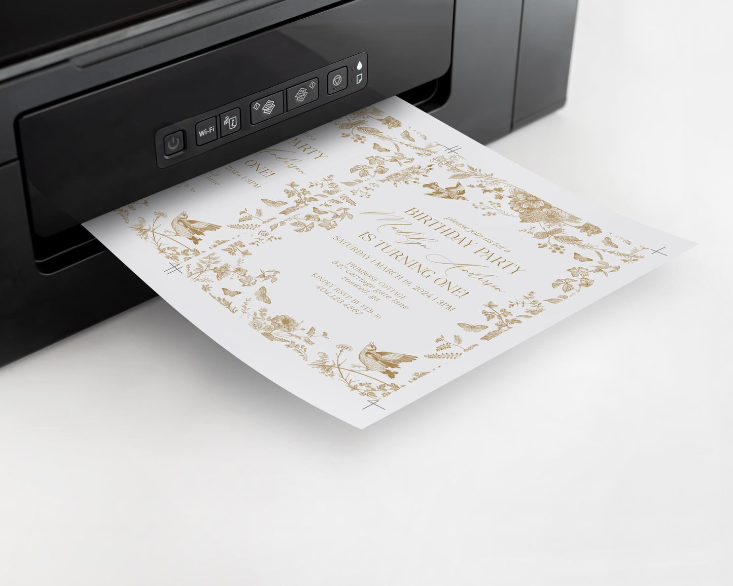 Gold Toile De Jouy First Birthday Bundle Printable Template