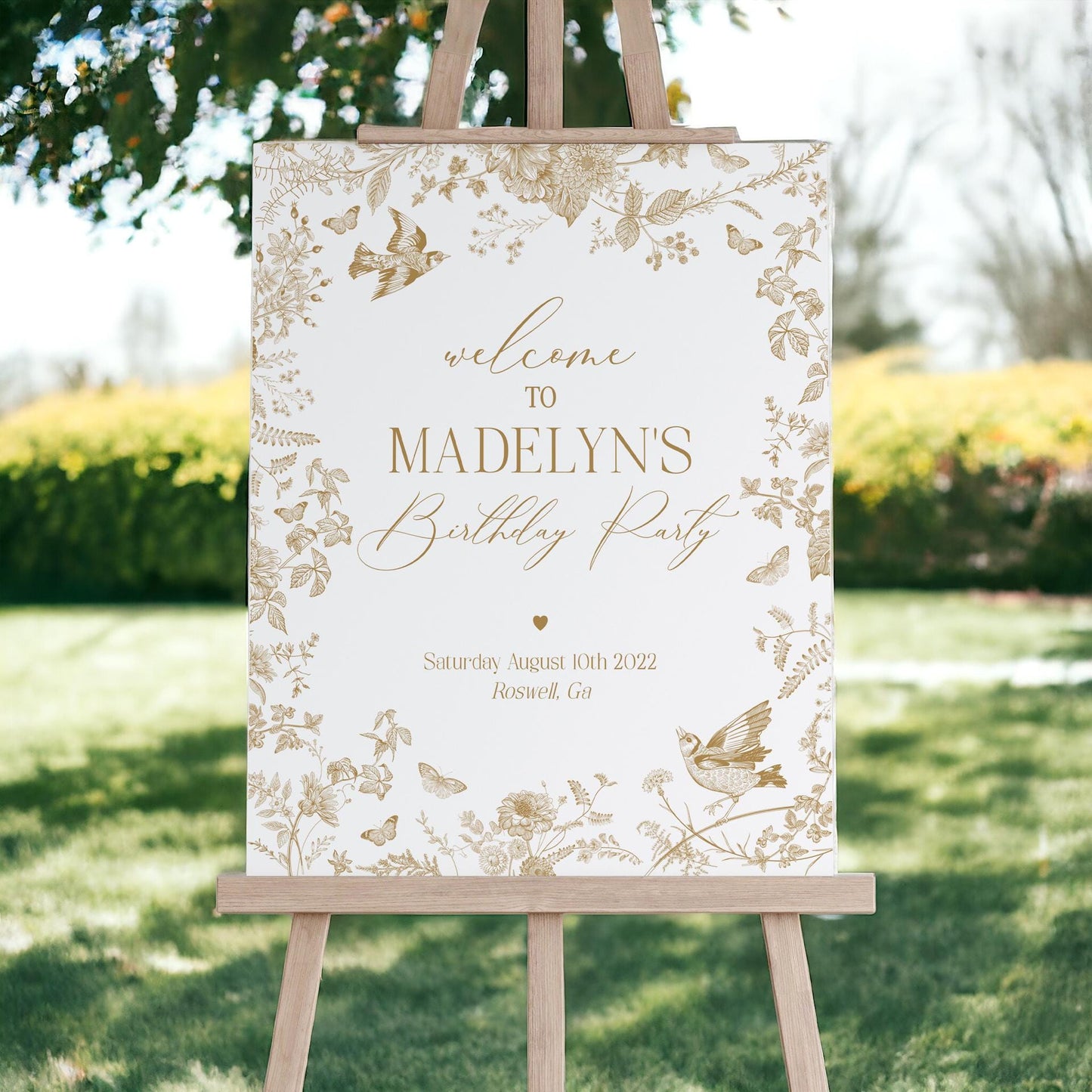 Gold Toile De Jouy Custom Sign Printable Party Decor for Baby or Bridal Shower, Vintage Gold Chinoiserie Birthday Party for French Country