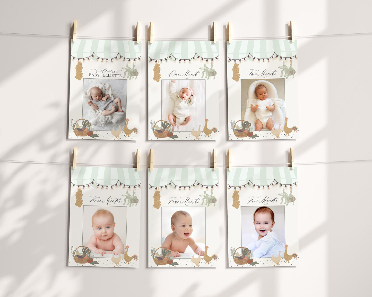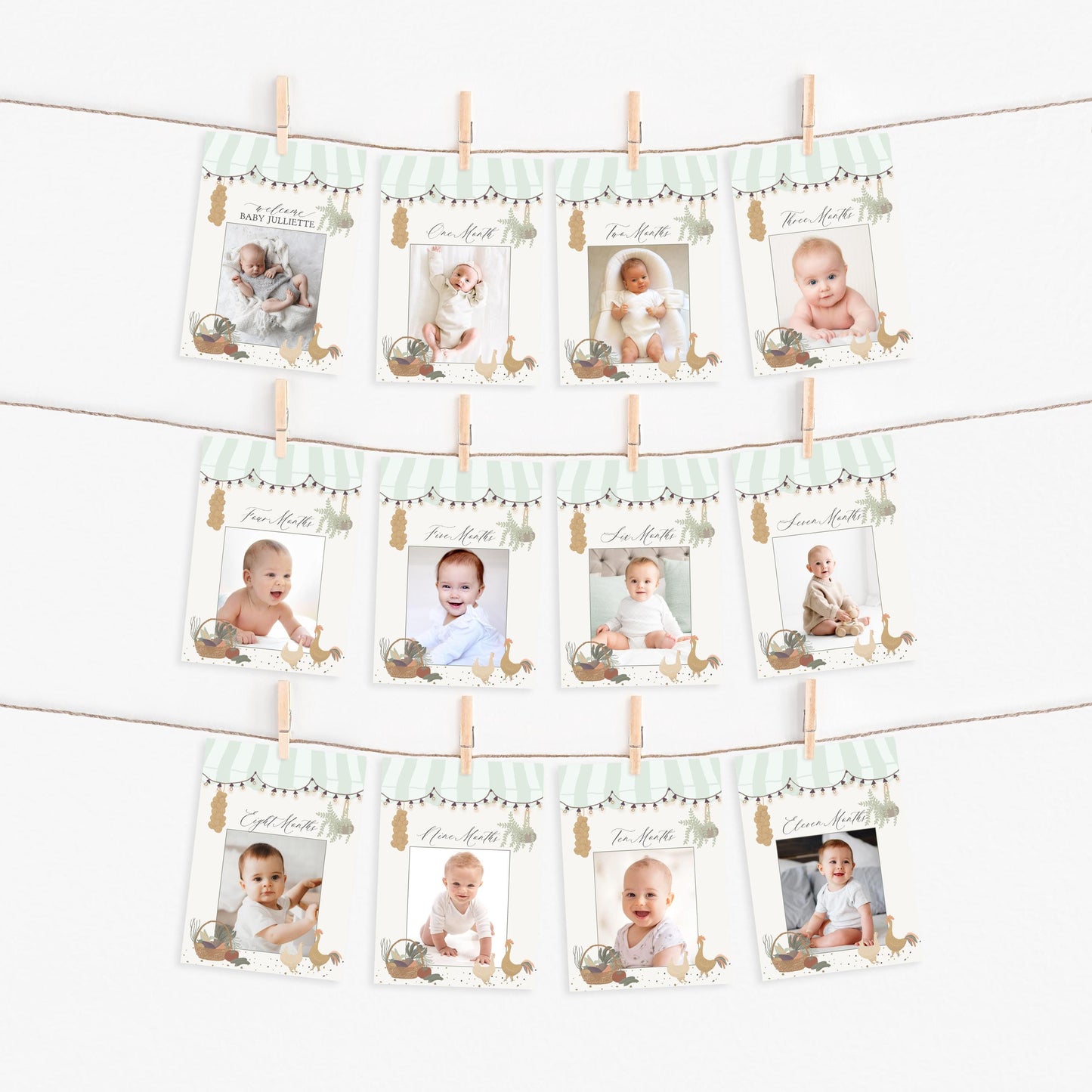 Green Farmers Market First Year Milestone Sign Template, Farm Fresh Party for Gender Neutral Birthday, Locally Grown Bday Party Decor WP1043