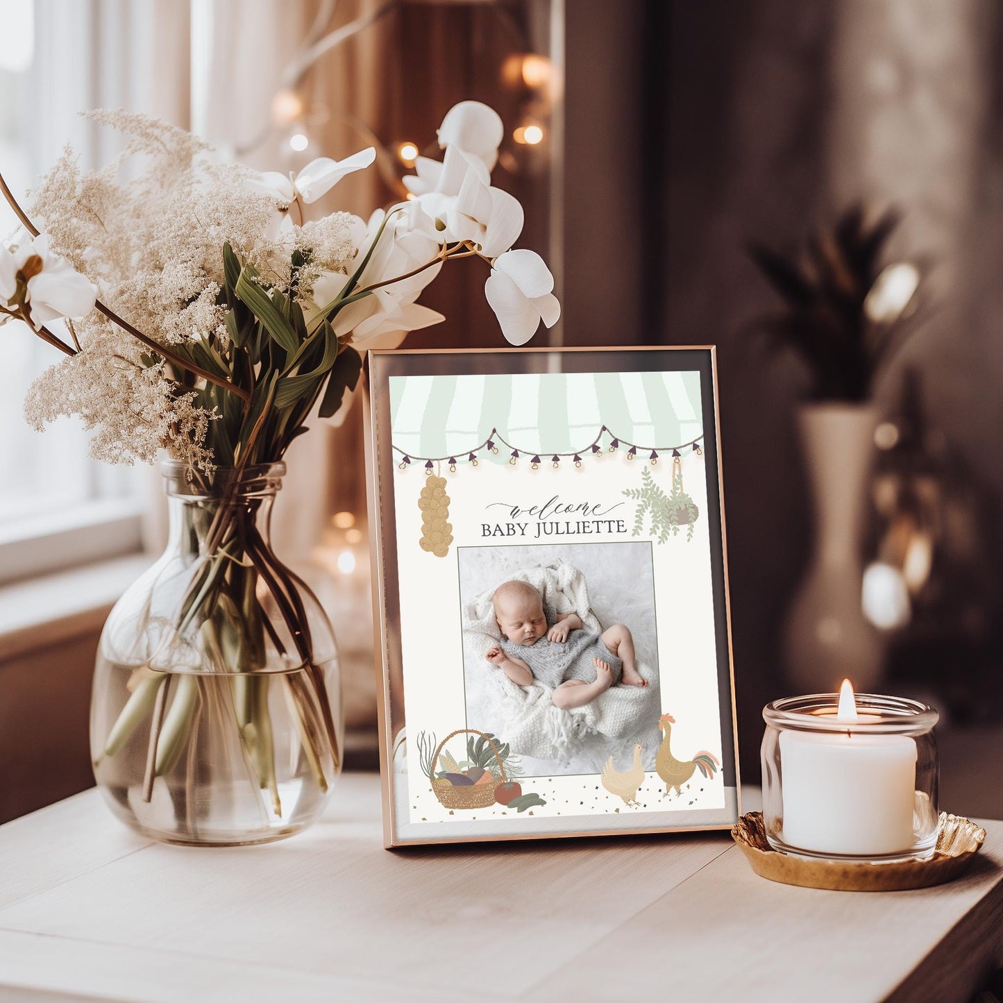 Green Farmers Market Baby Shower Welcome Sign Template, Farm Fresh Gender Neutral Baby Sprinkle, Locally Grown Party Decor, Homegrown WP1043