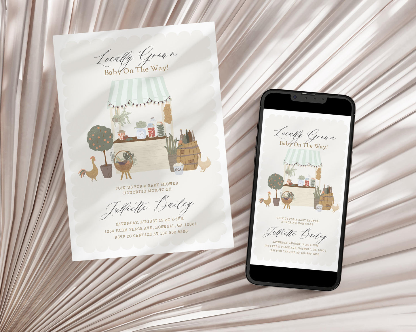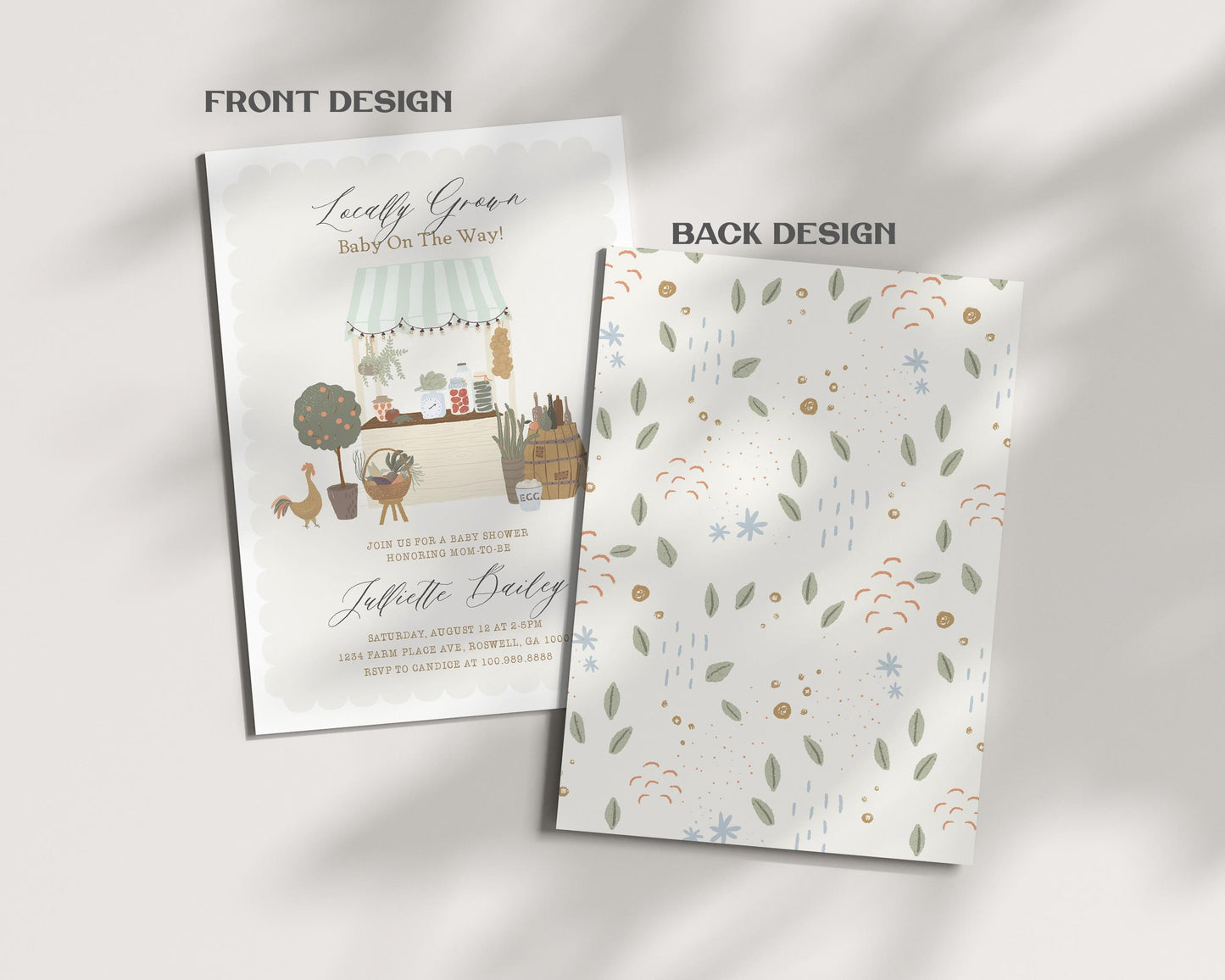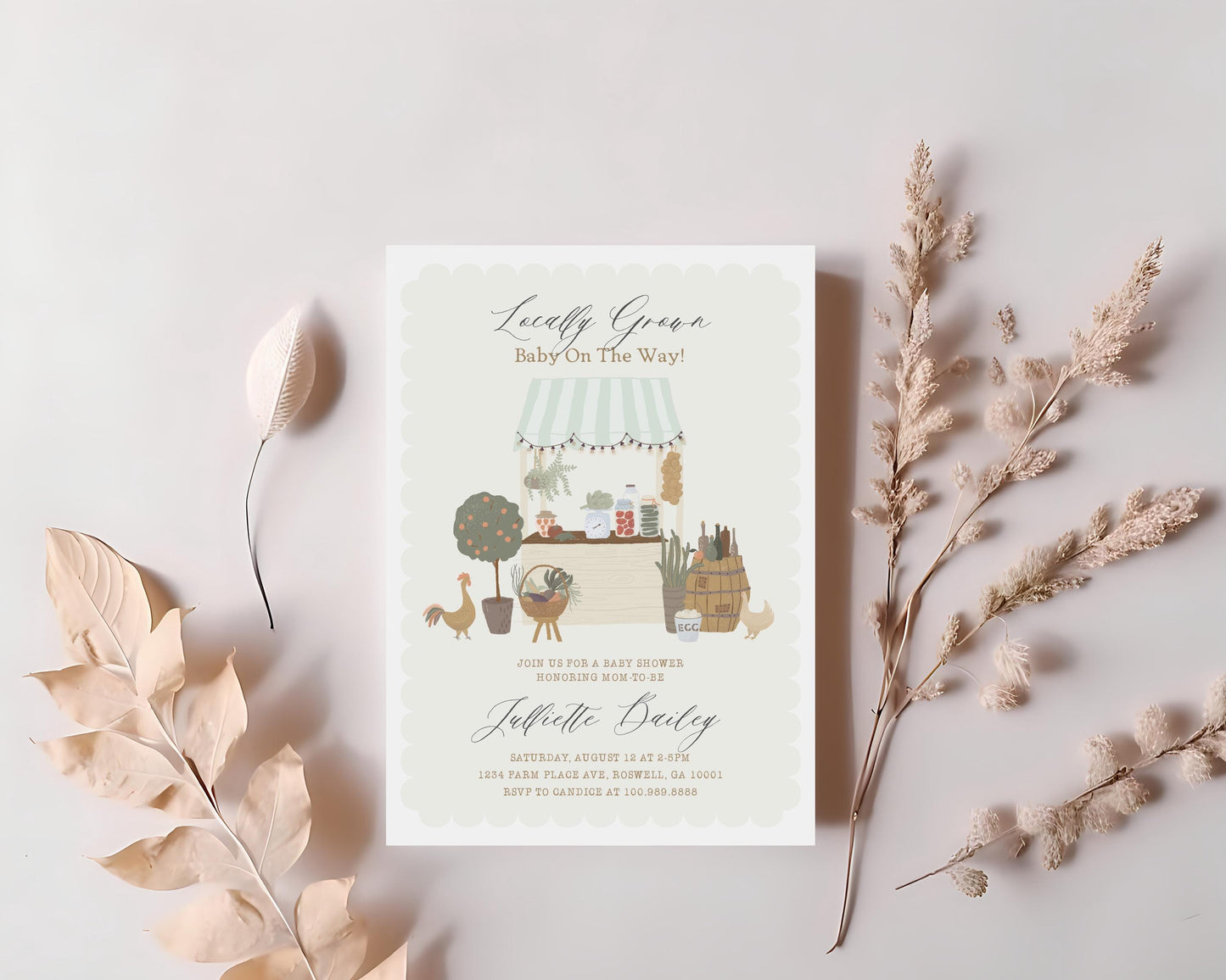 Green Farmers Market Baby Shower Invitation Template, Farm Fresh Gender Neutral Baby Sprinkle, Locally Grown Party Decor, Homegrown WP1043