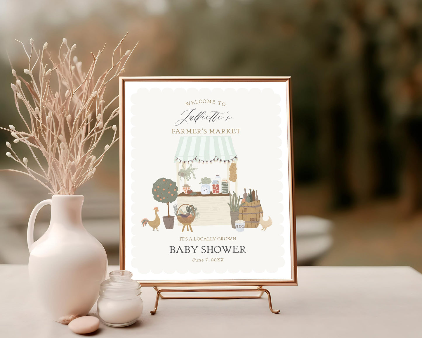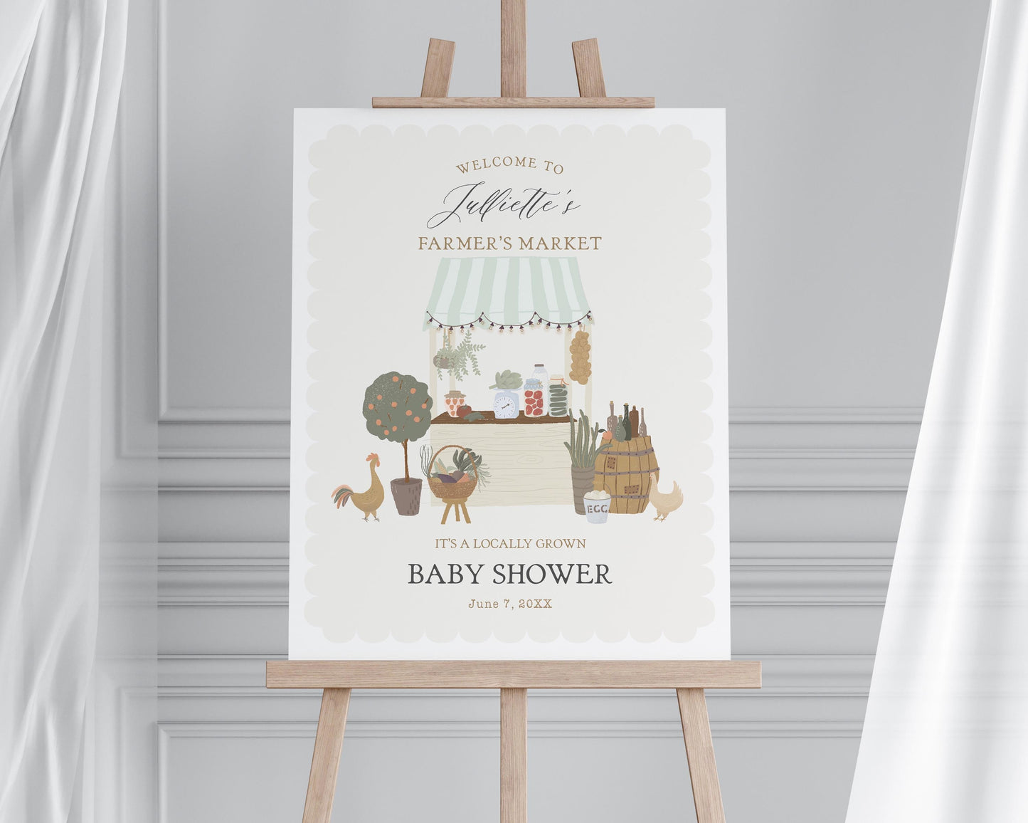 Green Farmers Market Baby Shower Welcome Sign Template, Farm Fresh Gender Neutral Baby Sprinkle, Locally Grown Party Decor, Homegrown WP1043