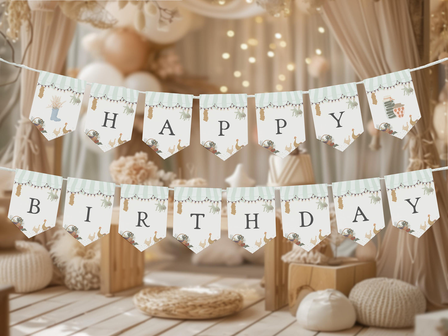 Green Farmers Market Birthday Banner Template, Farm Fresh Party for Gender Neutral Birthday, Locally Grown Bday Party Decor WP1043