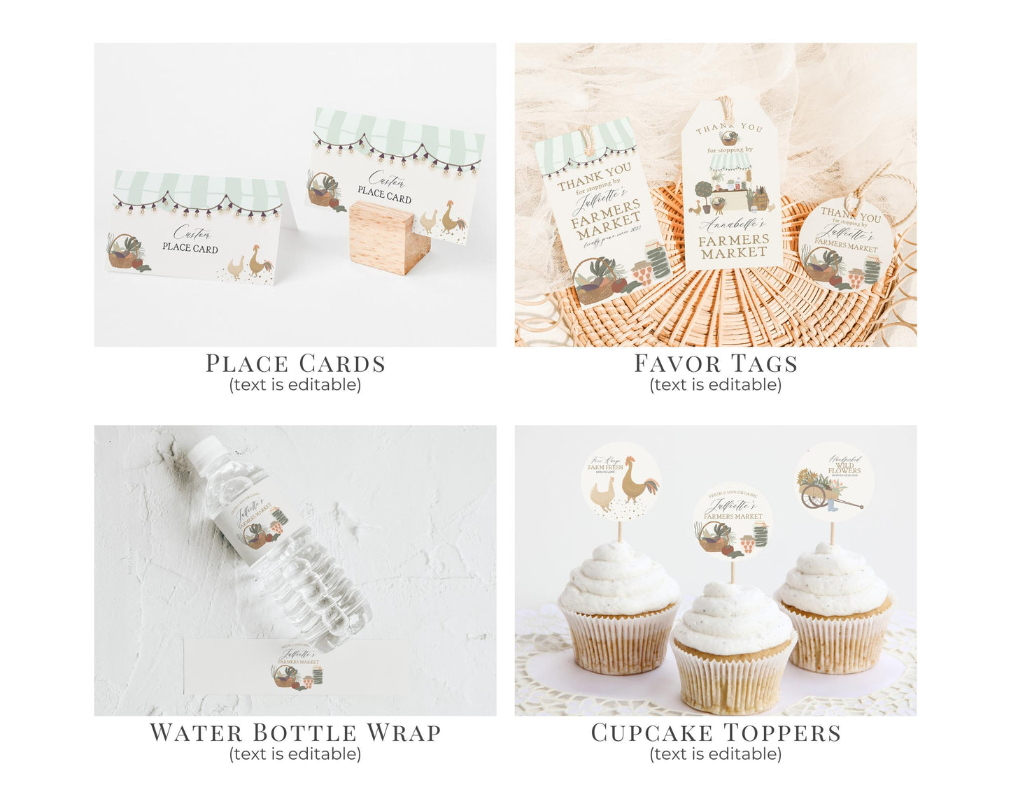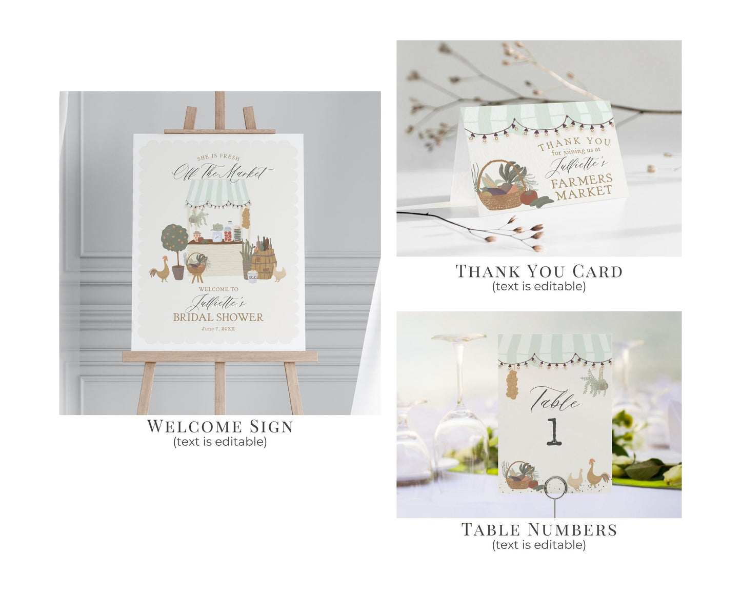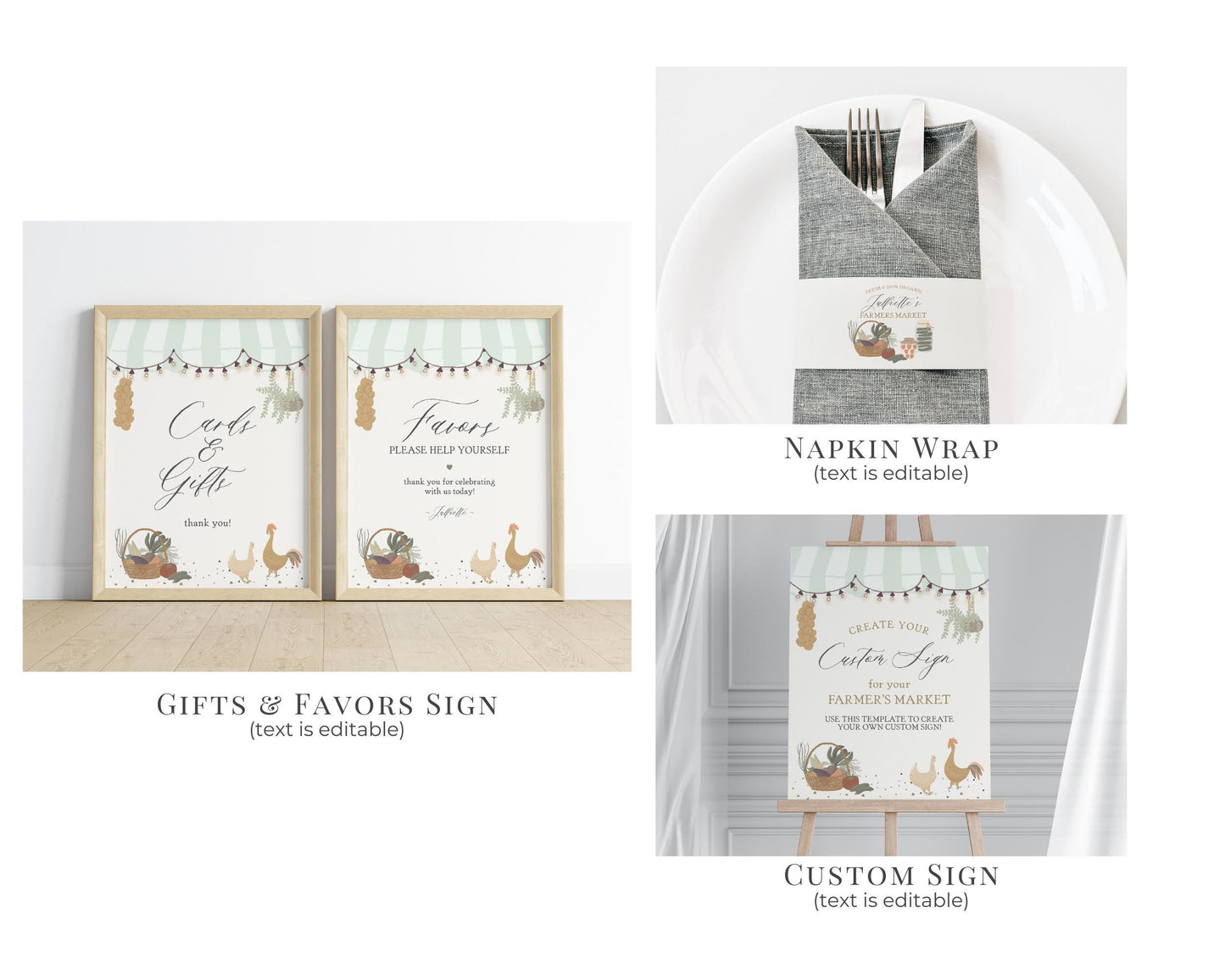 She is Fresh Off The Market! Elevate your event with the authentic charm of an outing at your local Farmers Market. This collection features an adorable green farmers market stand accented with market-fresh treasures. A party brimming with farm-fresh delights and the spirit of community.