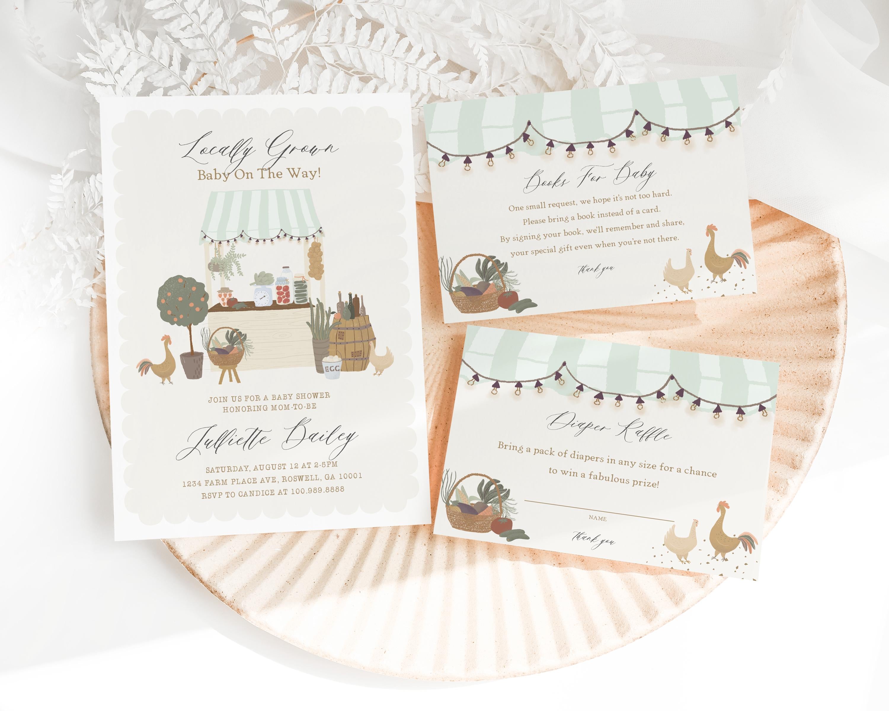 Green Farmers Market Advice for Baby Cards Template, Farm Fresh Gender Neutral Baby Sprinkle, Locally Grown Party Decor, Homegrown WP1043
