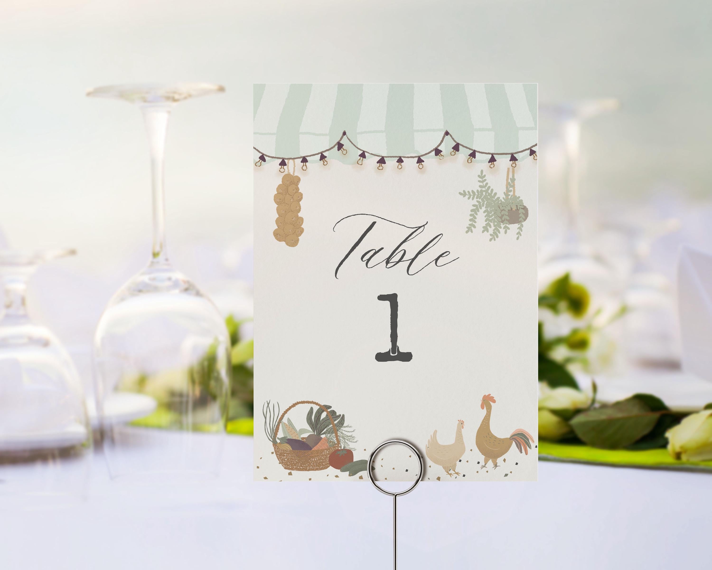Green Farmers Market Table Number Cards Template, Locally Grown Baby Shower, Fresh Off The Market Bridal Shower, Farm Fresh Birthday WP1043