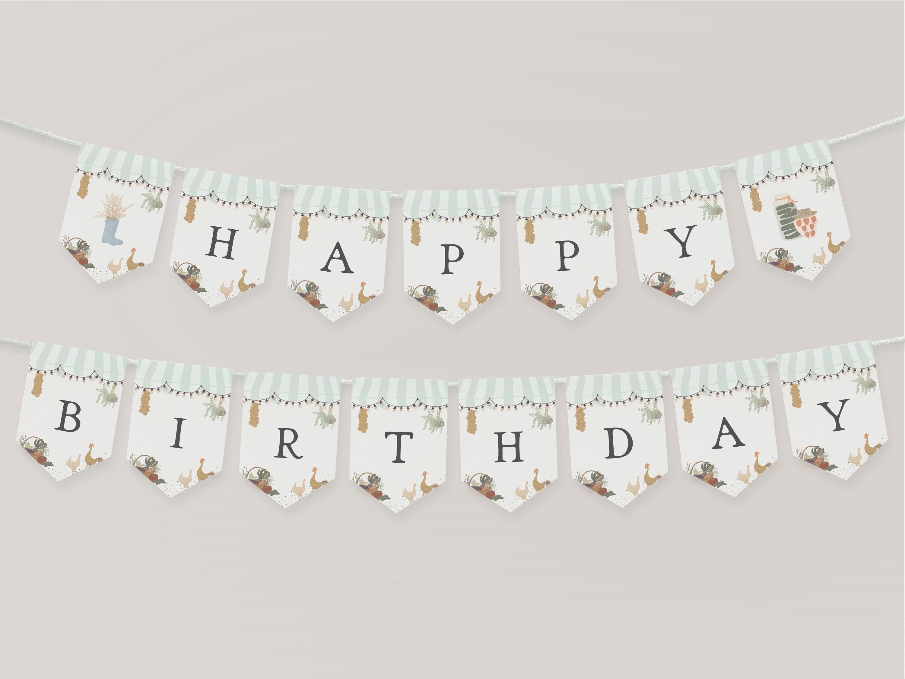 Green Farmers Market Birthday Banner Template, Farm Fresh Party for Gender Neutral Birthday, Locally Grown Bday Party Decor WP1043