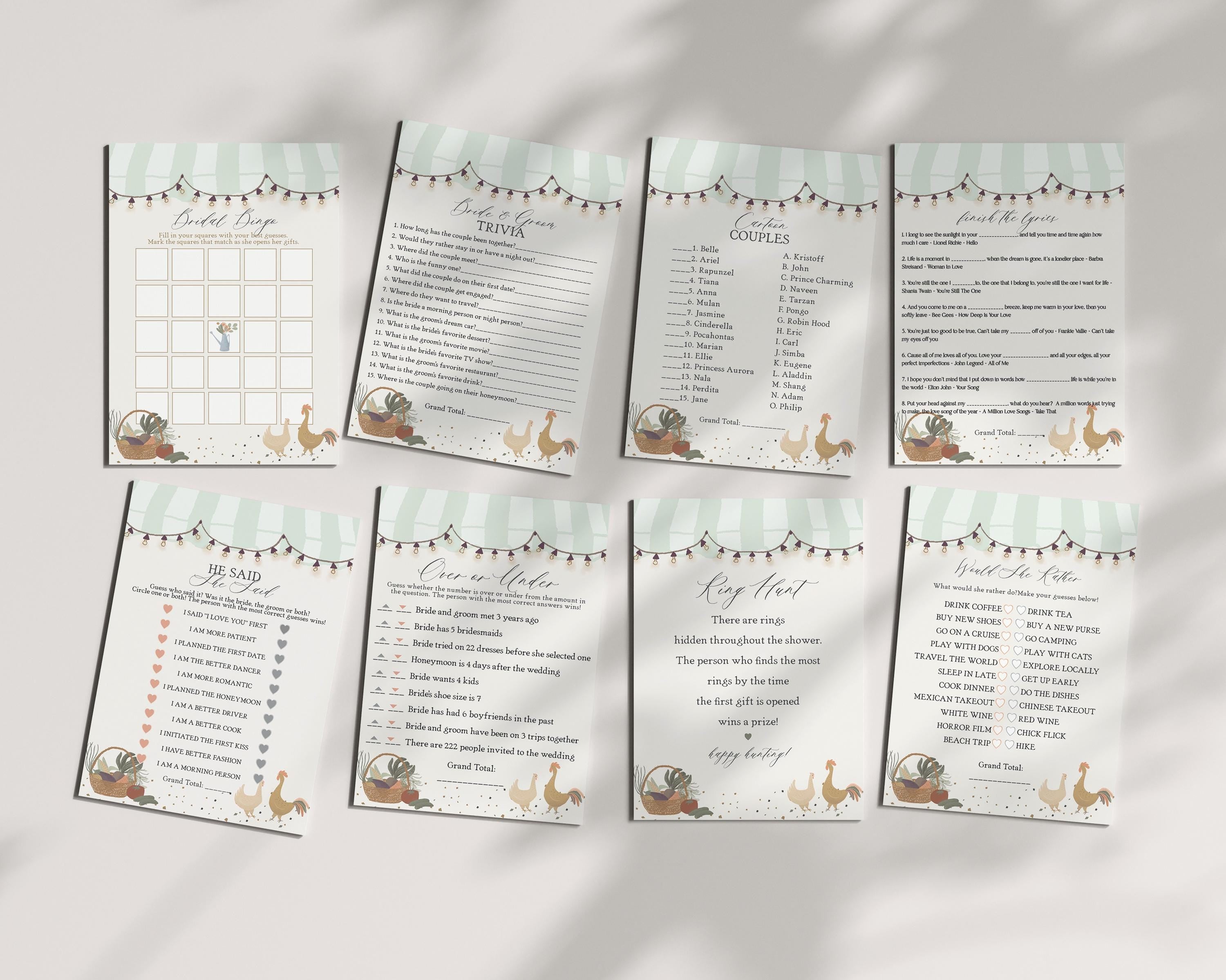 Green Farmers Market Bridal Shower Games Template