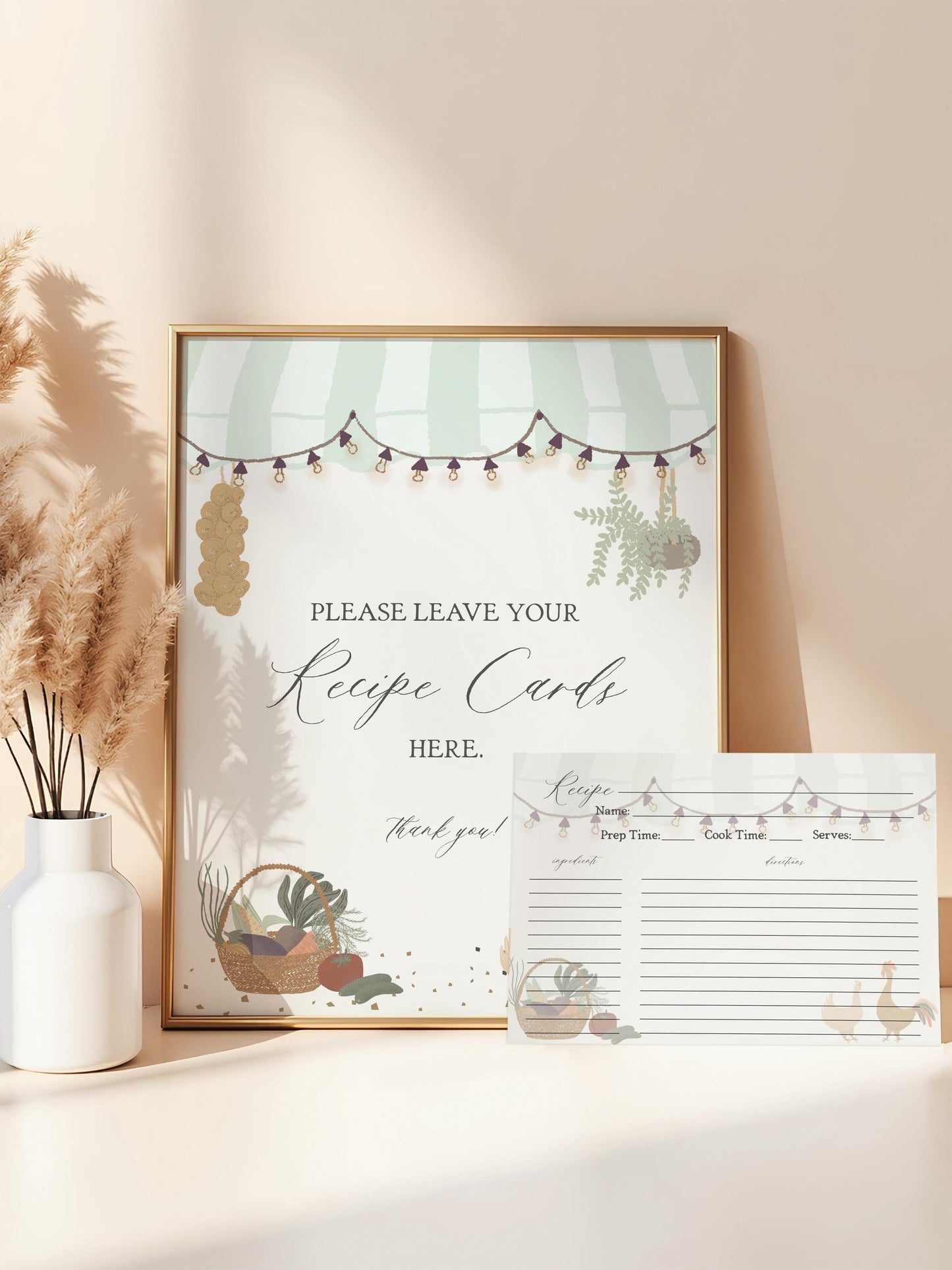 Green Farmers Market Recipe Card Bridal Shower Template, Farm Fresh Bridal Brunch with Bride, Fresh Off The Market Engagement Party WP1043