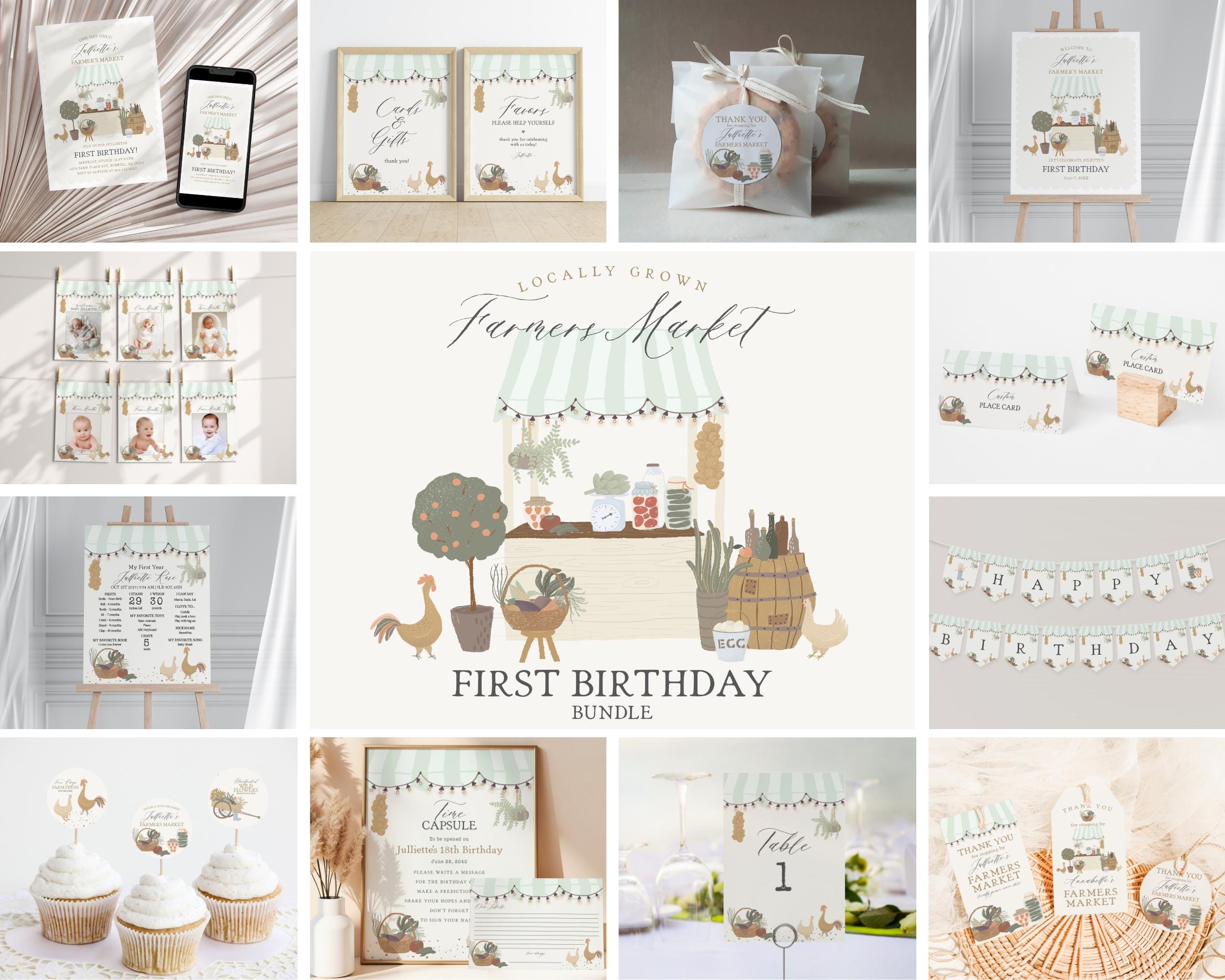 Green Farmers Market First Birthday Bundle Template
