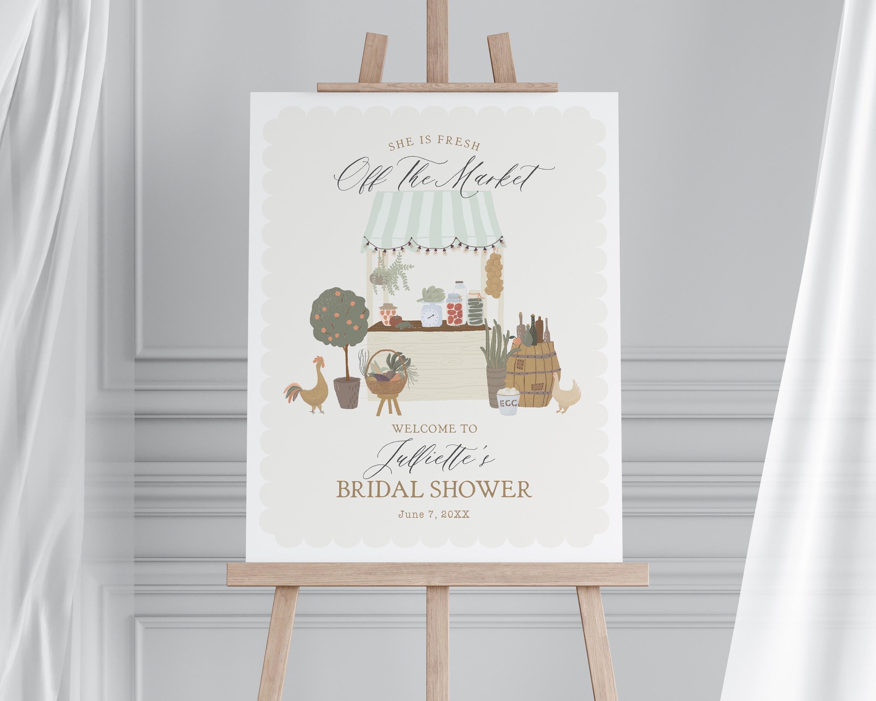 Green Farmers Market Bridal Shower Welcome Sign Template, Farm Fresh Bridal Brunch with Bride, Fresh Off The Market Engagement Party WP1043