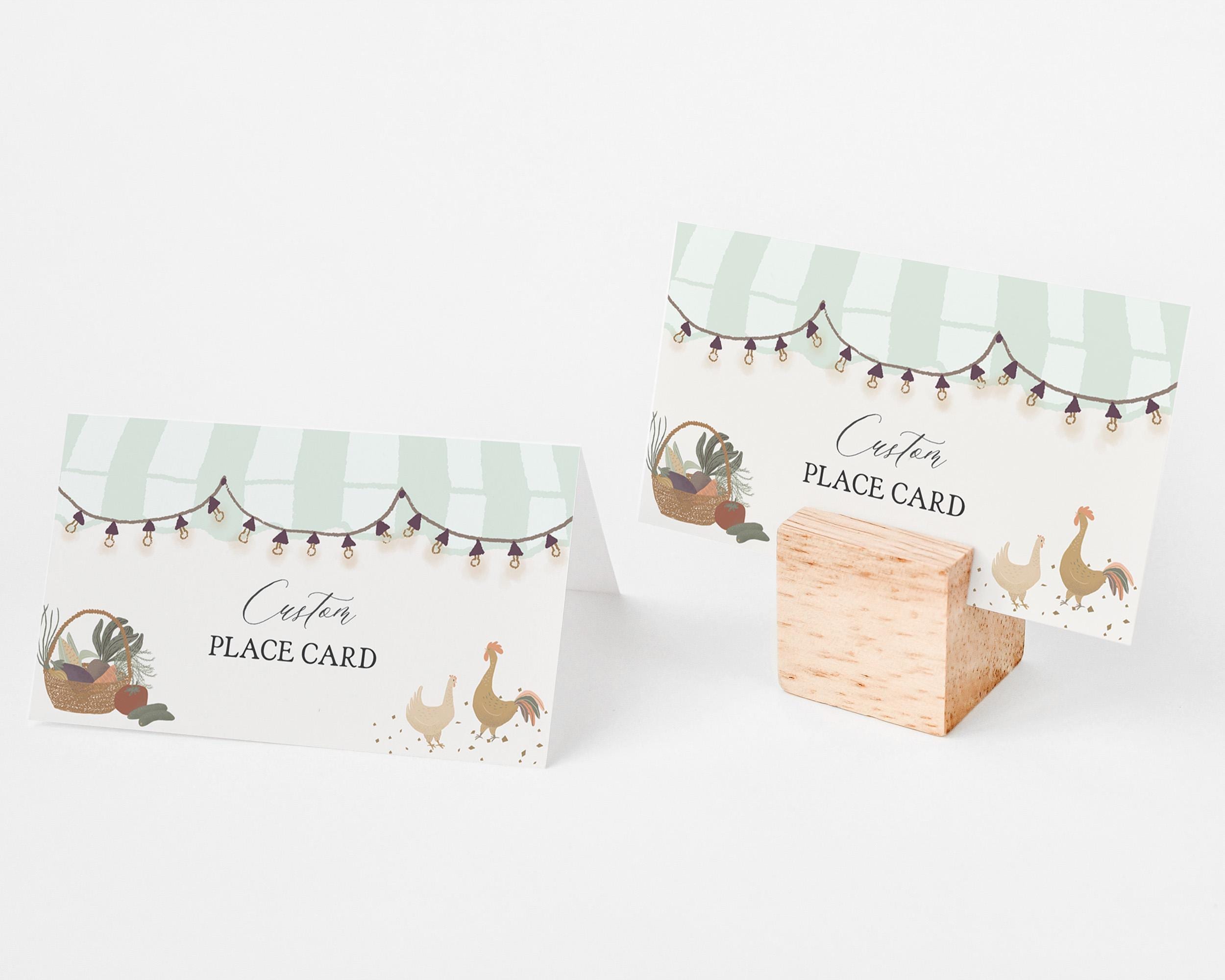 Green Farmers Market Place Cards Template, Locally Grown Baby Shower, Fresh Off The Market Bridal Shower, Farm Fresh Birthday Party WP1043