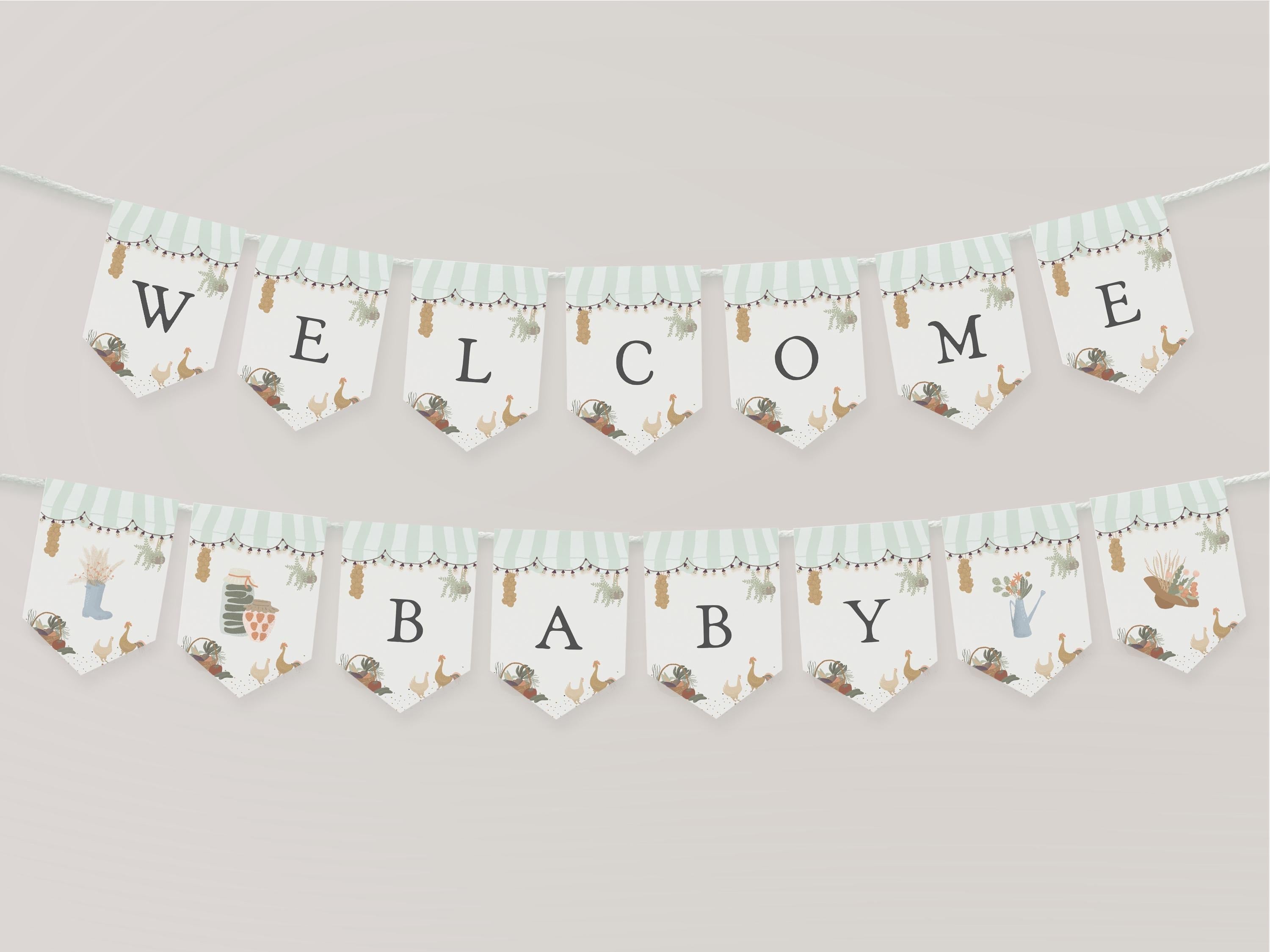 Green Farmers Market Baby Shower Welcome Sign Template, Farm Fresh Gender Neutral Baby Sprinkle, Locally Grown Party Decor, Homegrown WP1043