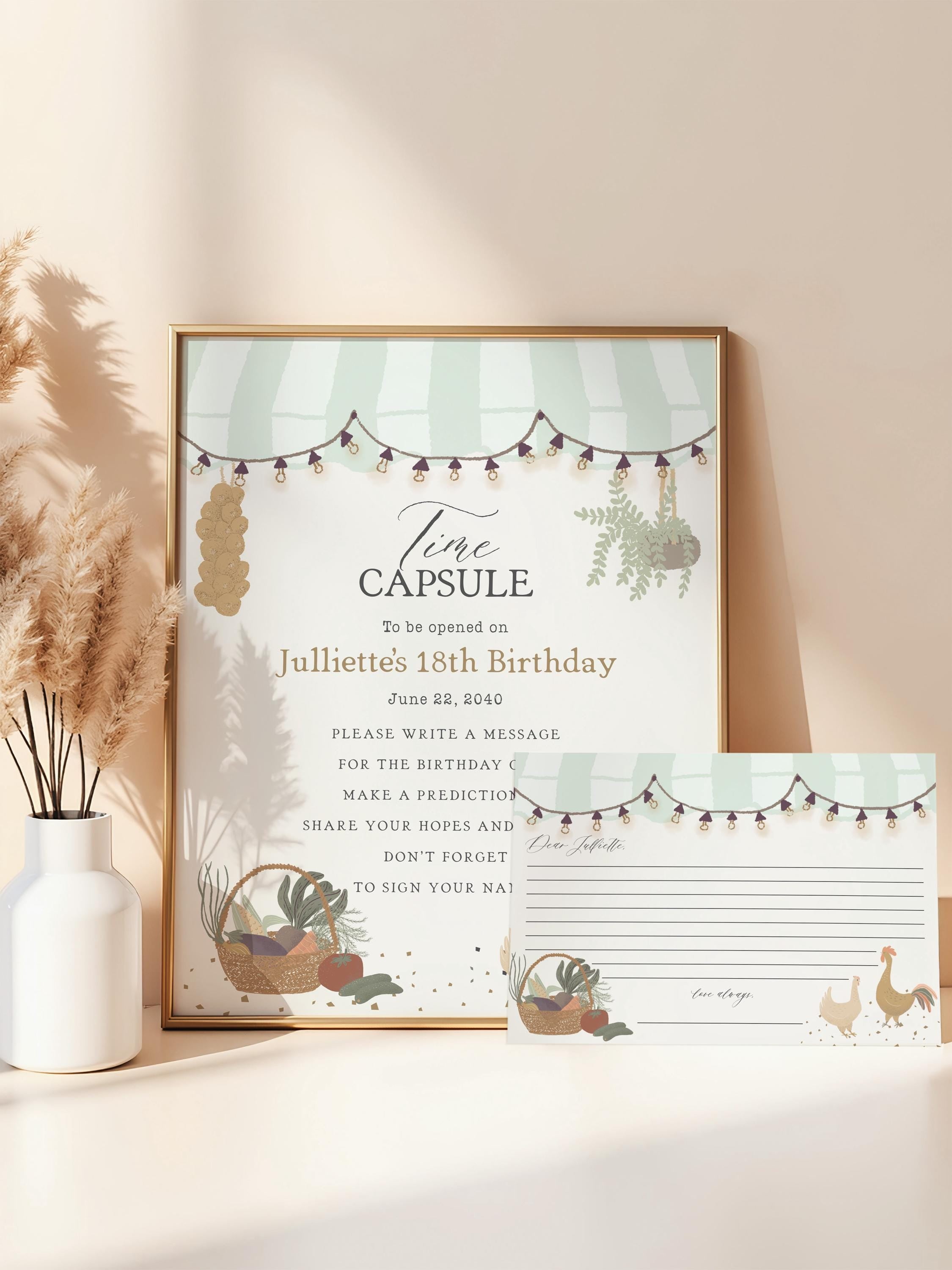 Green Farmers Market Time Capsule Printable Template, Farm Fresh Party for Gender Neutral Birthday, Locally Grown Bday Party Decor WP1043