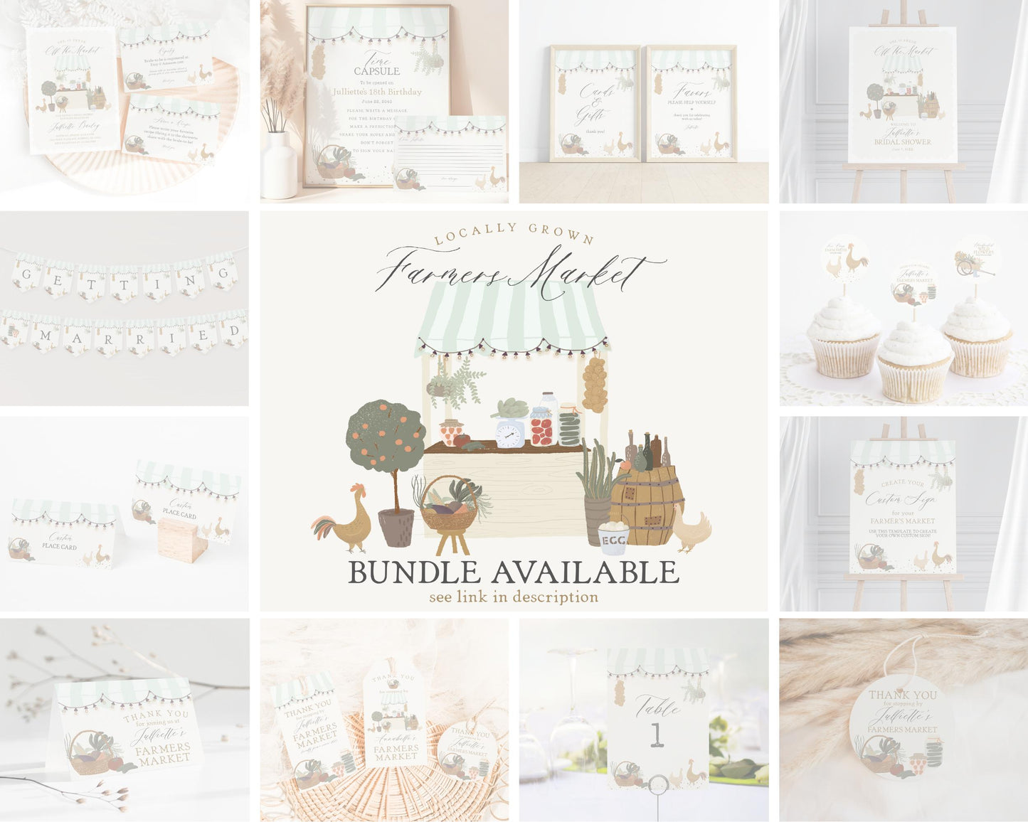 Green Farmers Market Birthday Bundle Printable Template
