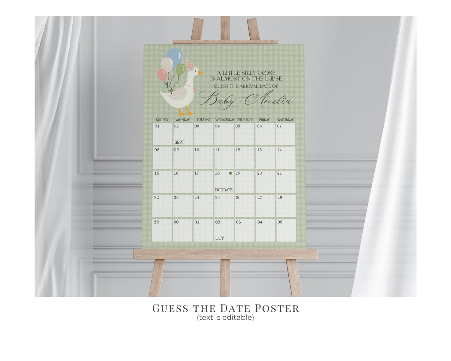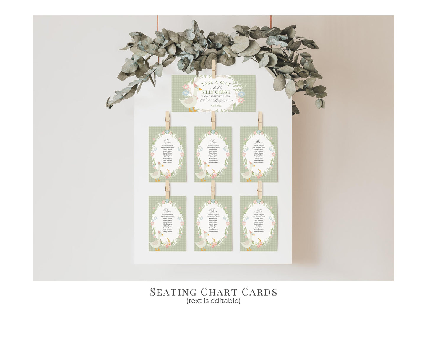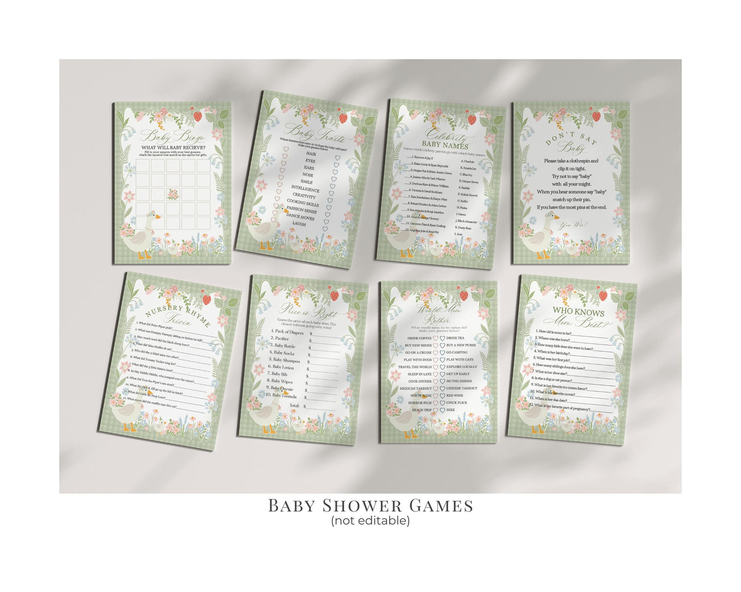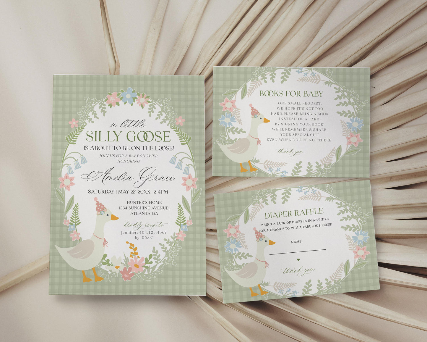 Green Floral Silly Goose Baby Shower Bundle Printable Template