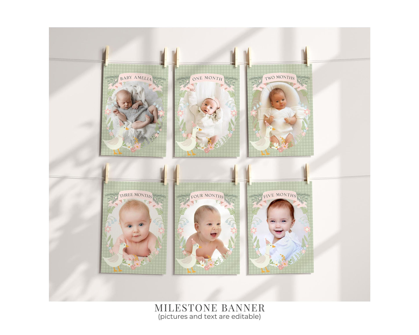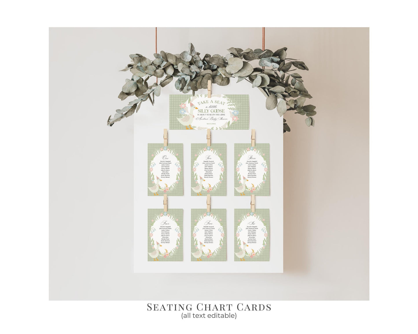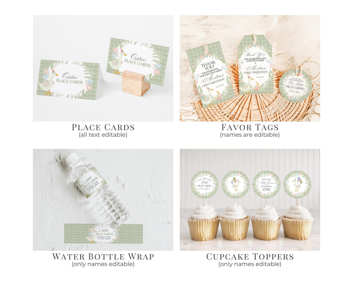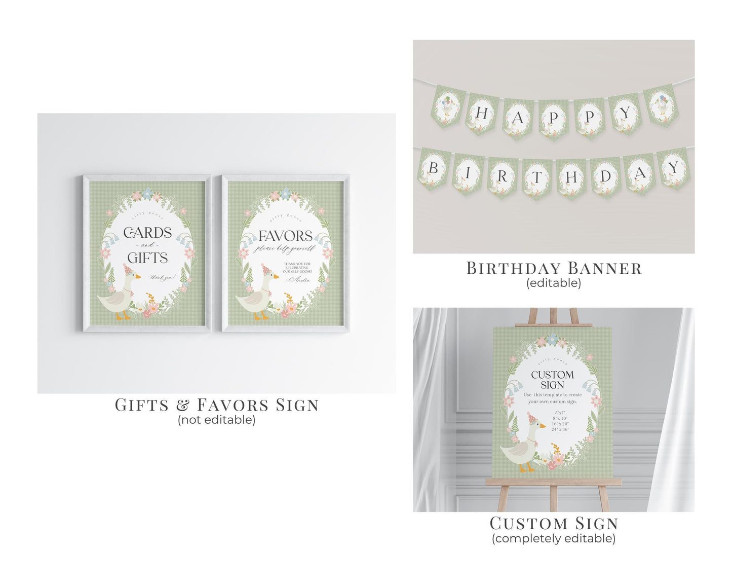 Green Floral Silly Goose First Birthday Bundle Printable Template