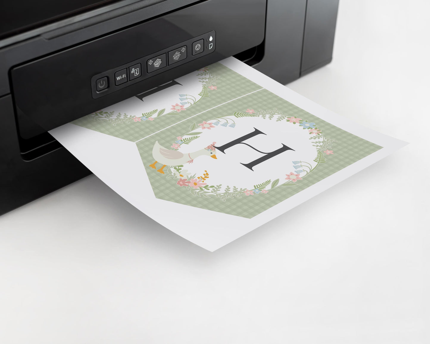 Green Floral Silly Goose Place Cards Printable Template, Little Duck Theme Girl Birthday Party, Pastel Gingham Baby Shower Sprinkle WP1024