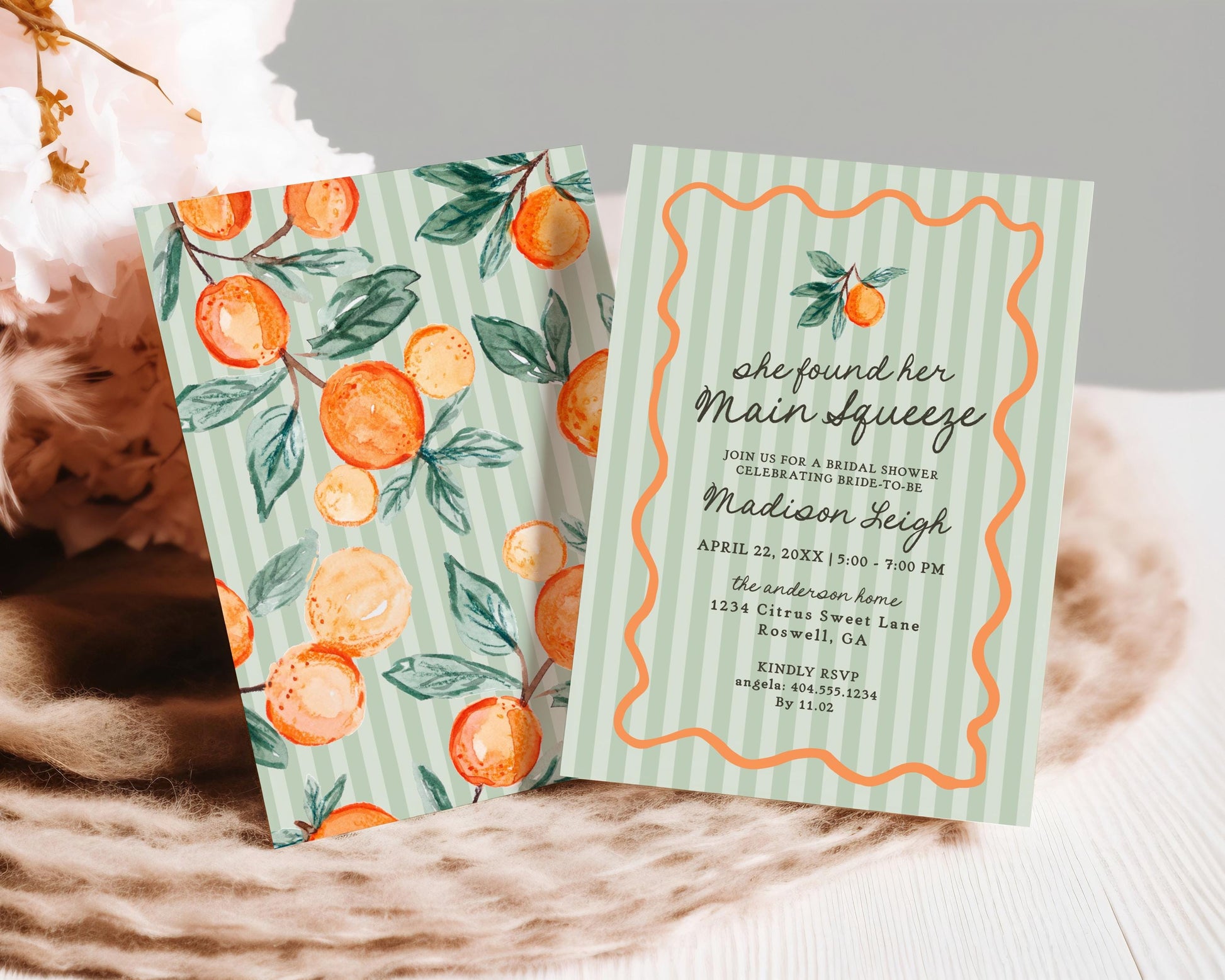 Green Little Cutie Menu Template, Main Squeeze Bridal Shower, Citrus Baby Shower Decor, Summer Birthday Party Clementine Engagement WP1051