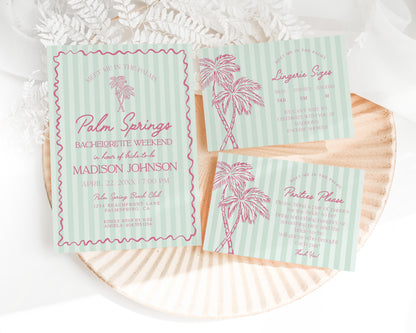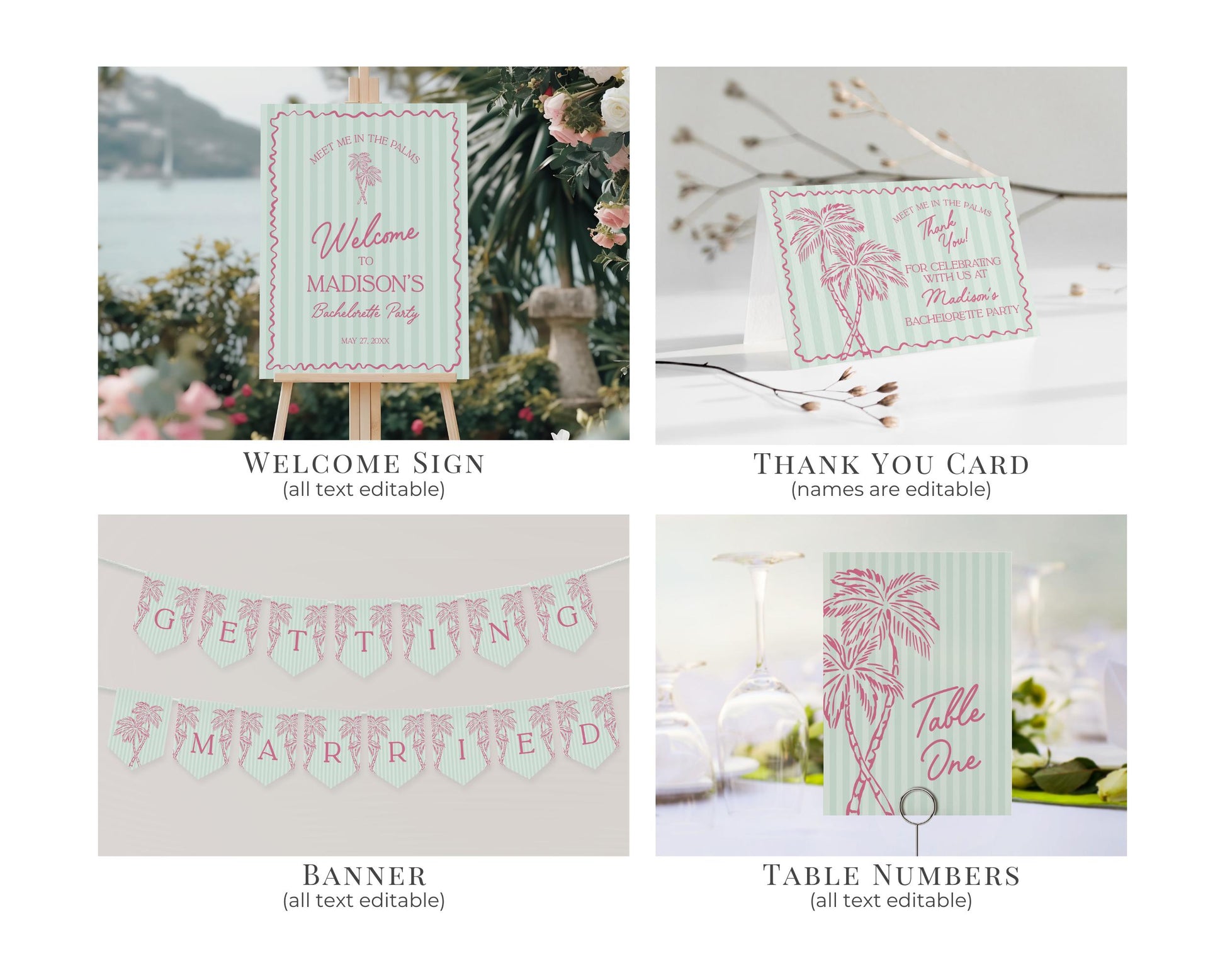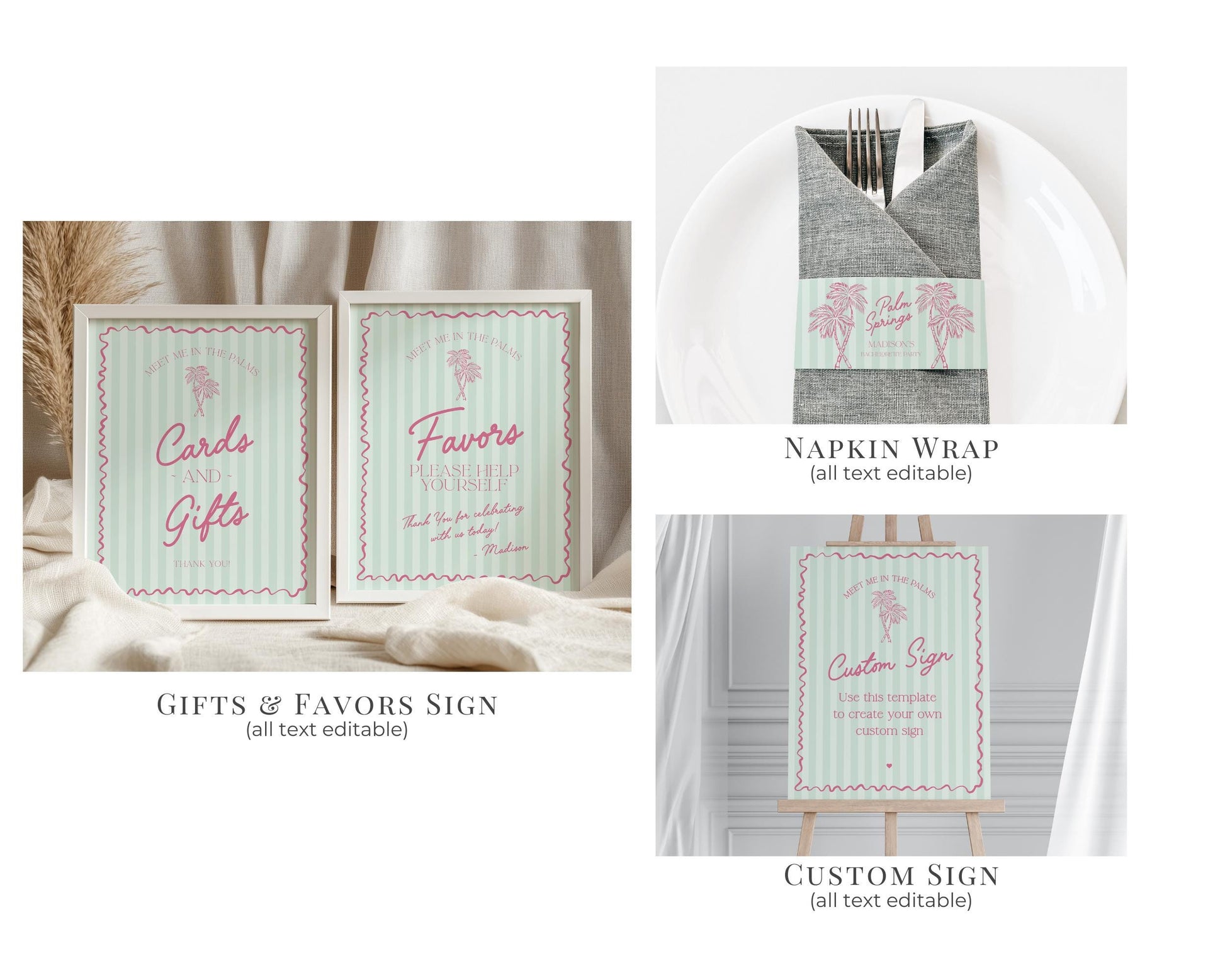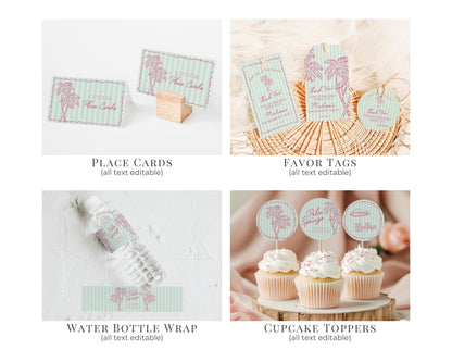 Meet me in the palms! Our Palm Springs Party Collection is a dreamy blend of vintage beach cabana charm and pastel perfection. Featuring soft stripes, breezy palm trees, and a touch of retro glam, this collection brings the magic of a sun-soaked getaway to your celebration. Whether you're hosting a bachelorette bash, bridal shower, or birthday soirée, these chic collection will transport your guests straight to a stylish mid-century oasis.