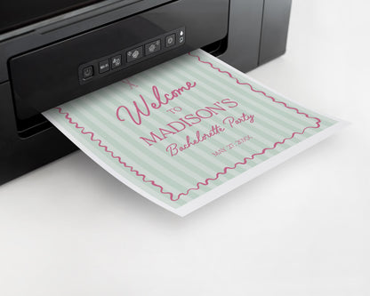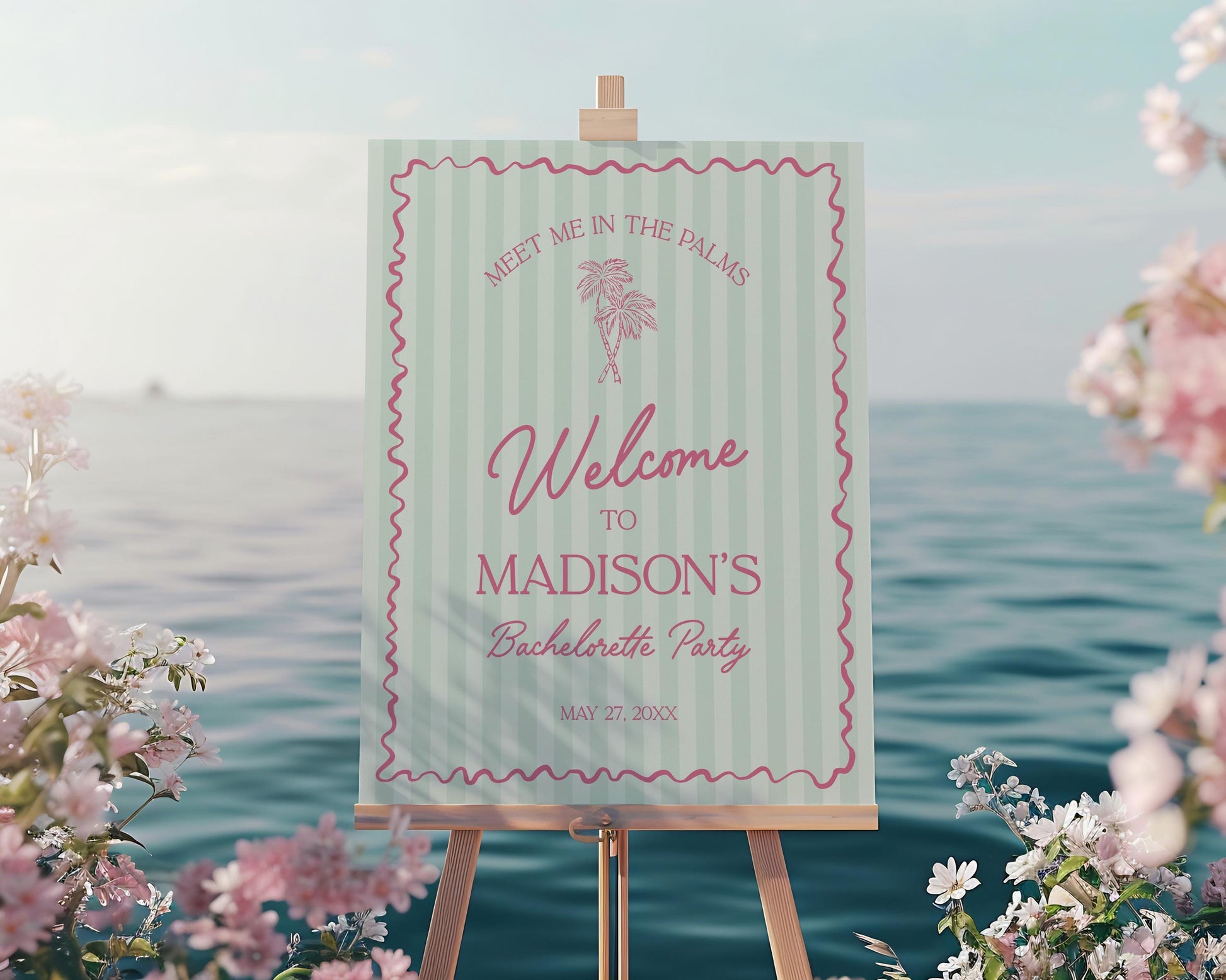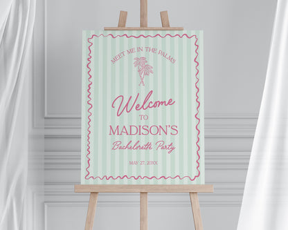 Green Palm Springs Bachelorette Party Welcome Template, Vintage Palm Tree Beach Cabana Pool Party, Tropical Pastel Last Fling Bach WP1047