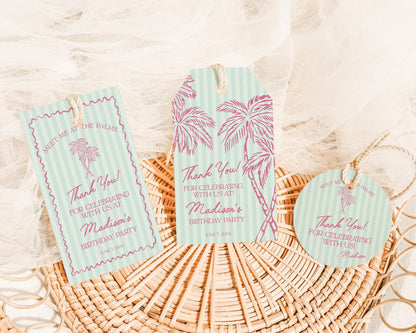 Green Palm Springs Birthday Party Favor Tags Template