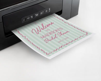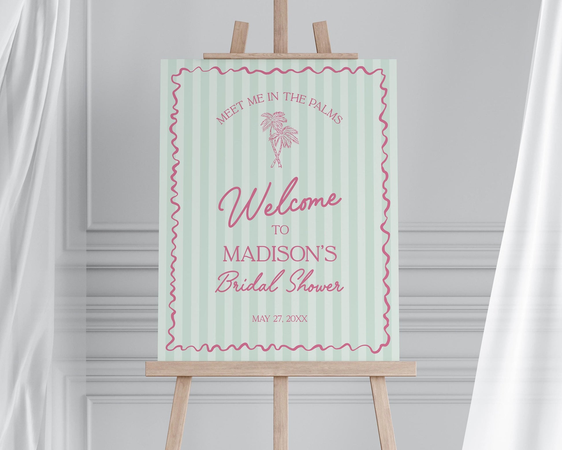 Green Palm Springs Bridal Shower Welcome Template, RVintage Palm Tree Beach Cabana Bridal Brunch, Retro Tropical Pastel Pool Party WP1047