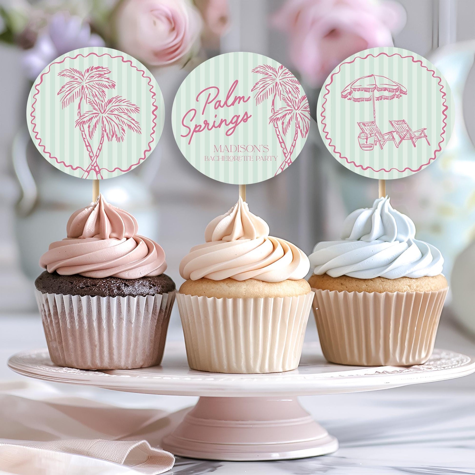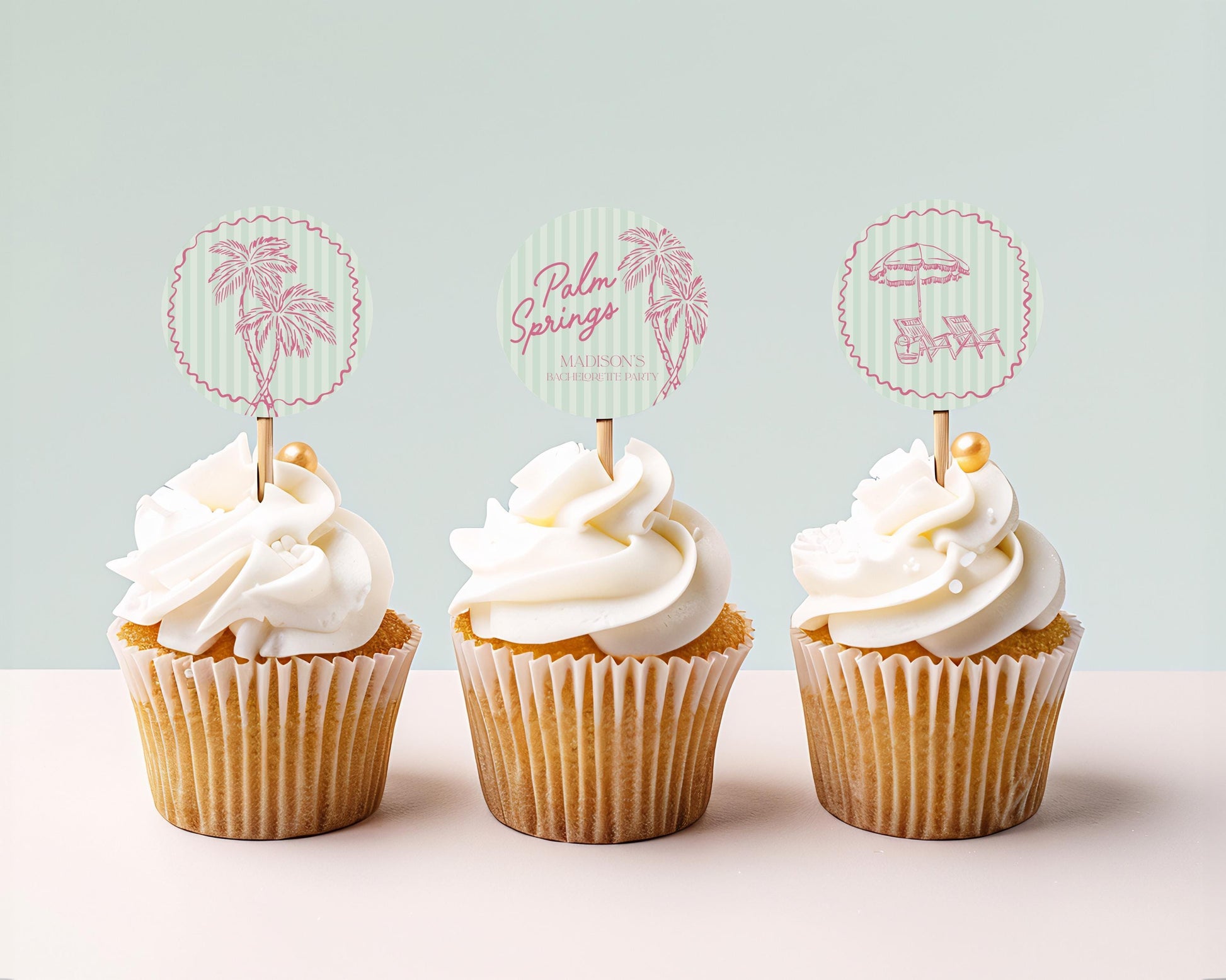 Green Palm Springs Cupcake Toppers Printable