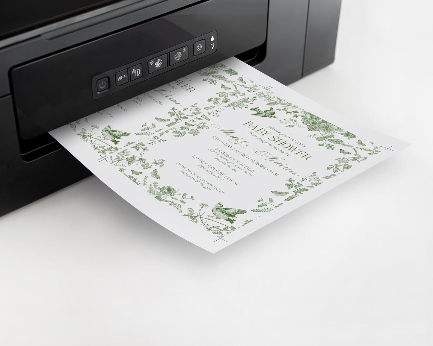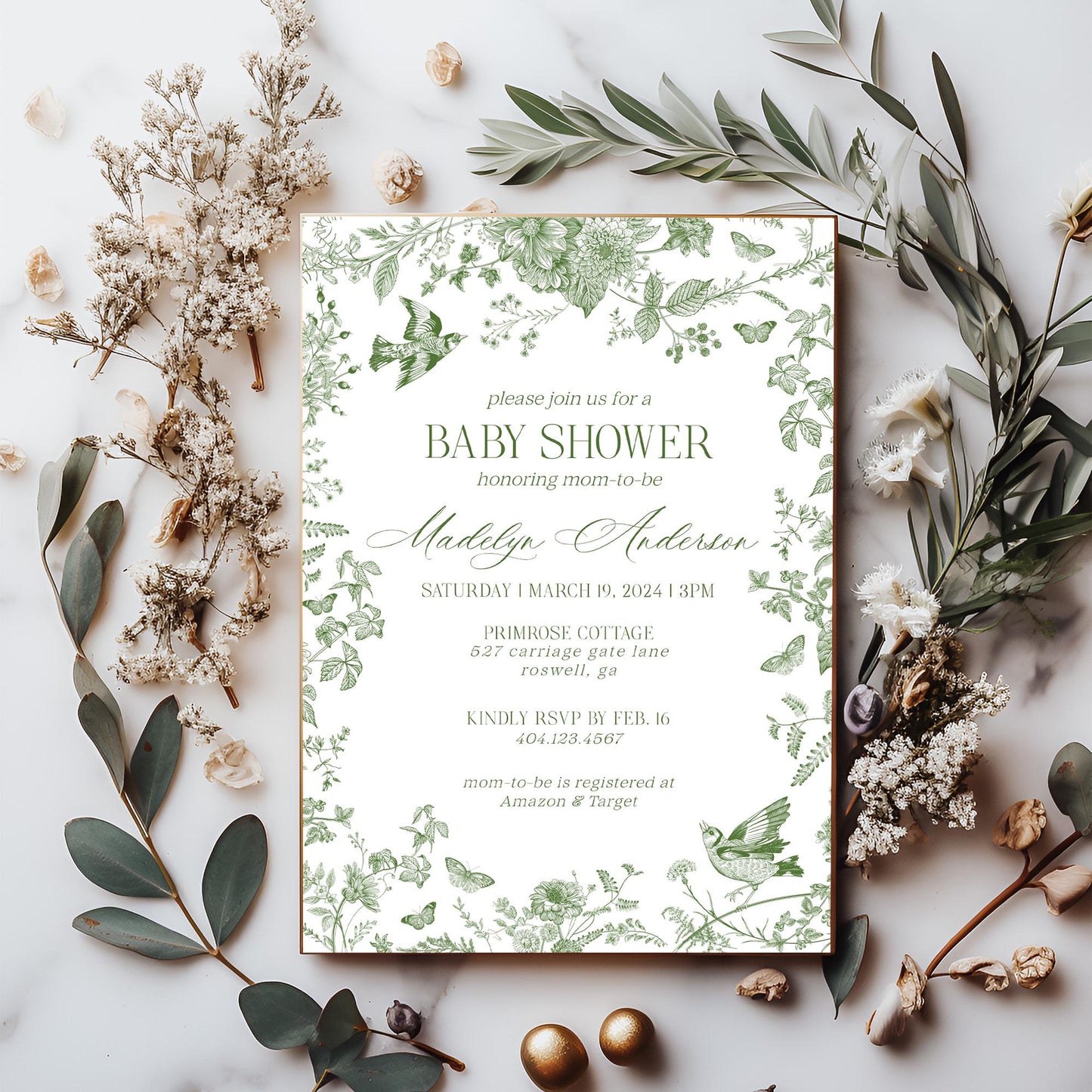 Green Toile De Jouy Bridal Shower Printable Bundle