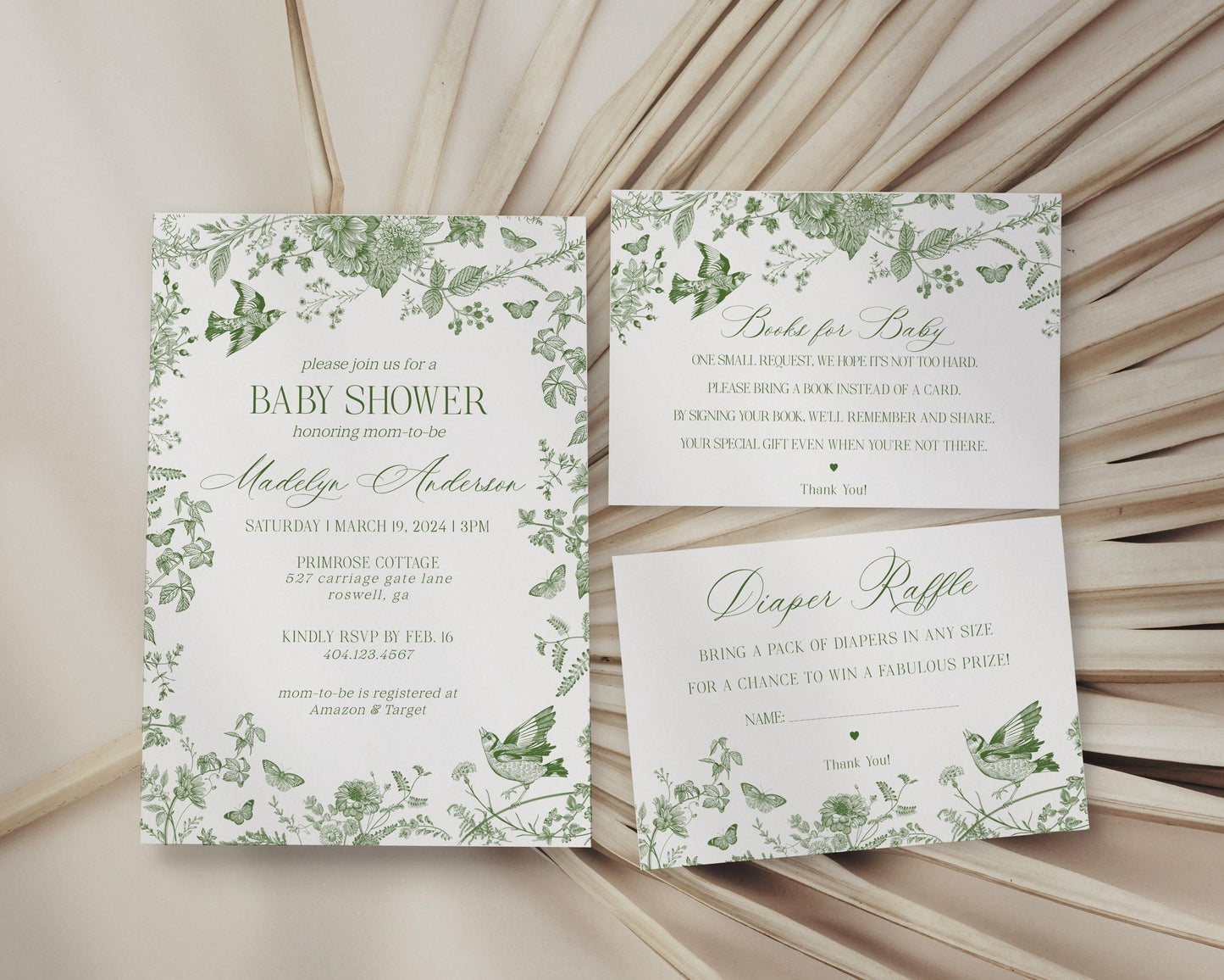 Green Toile De Jouy Baby Shower Diaper Thoughts Template