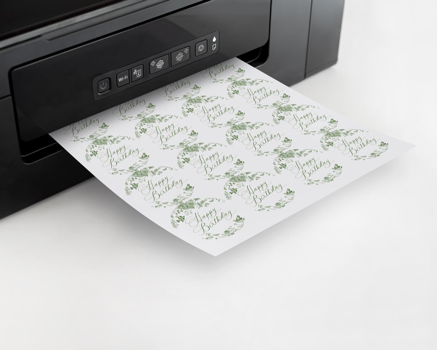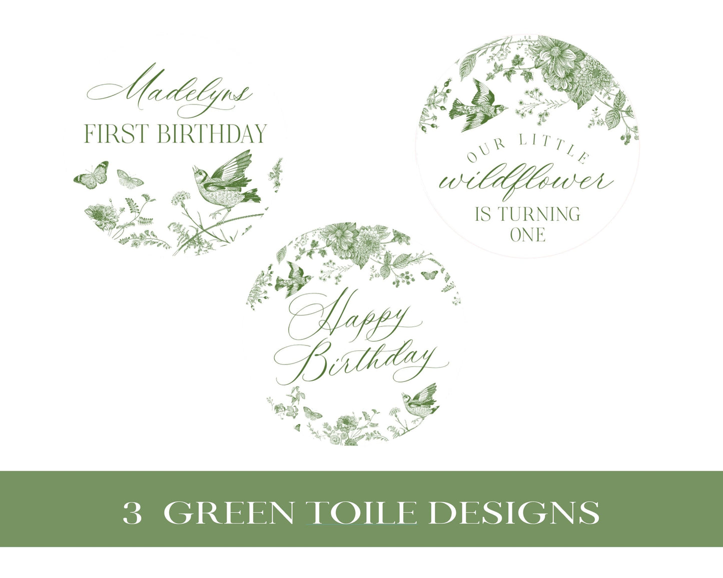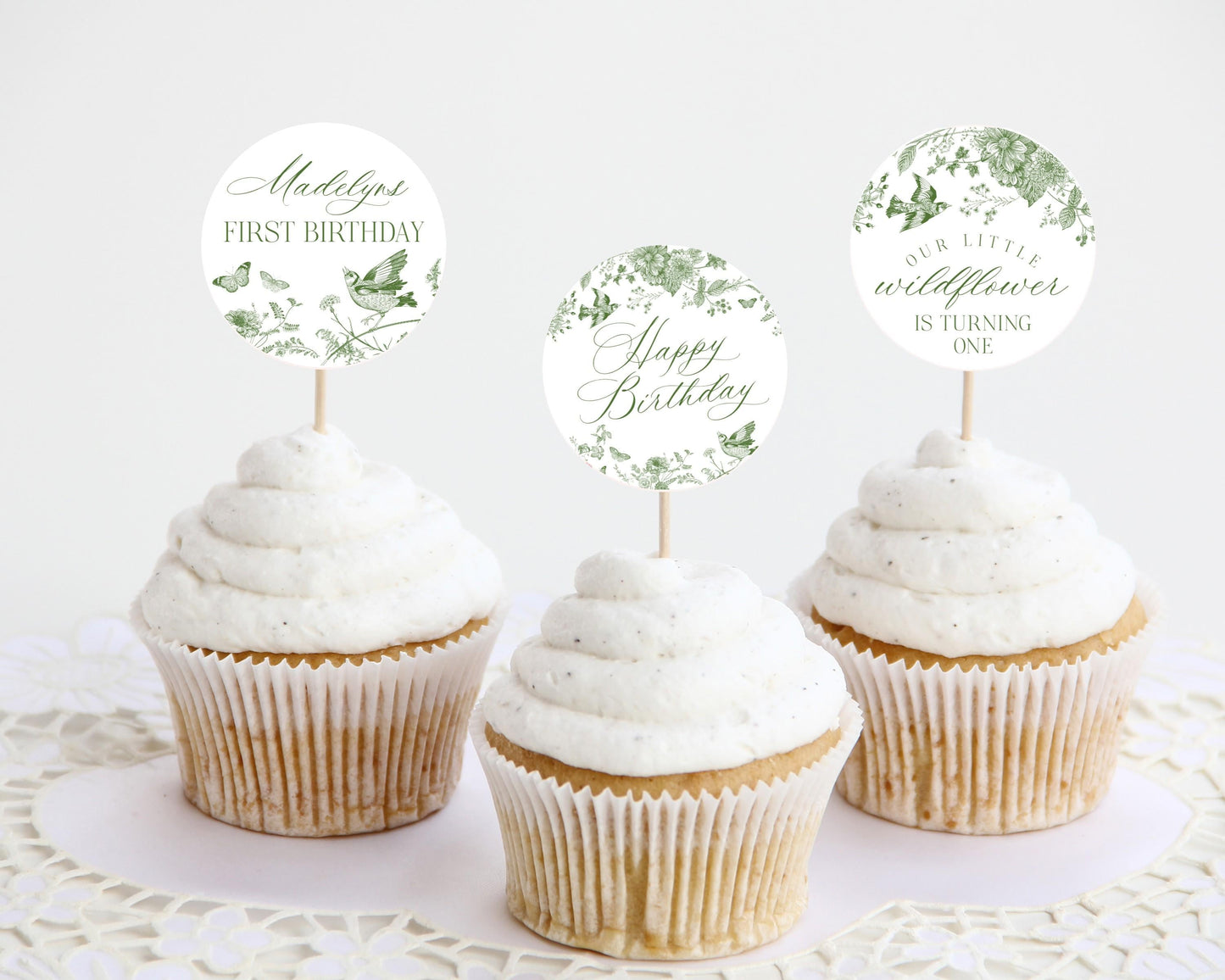 Green Toile De Jouy Birthday Cupcake Topper Template
