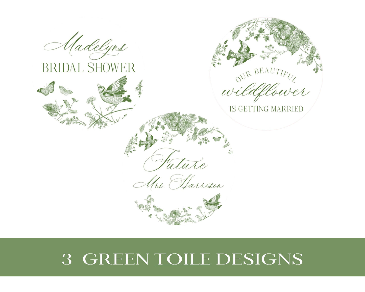 Green Toile De Jouy Bridal Shower Printable Bundle