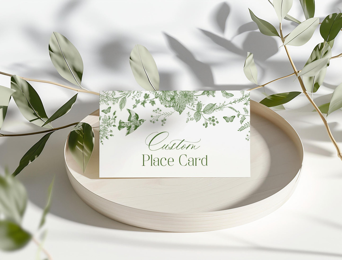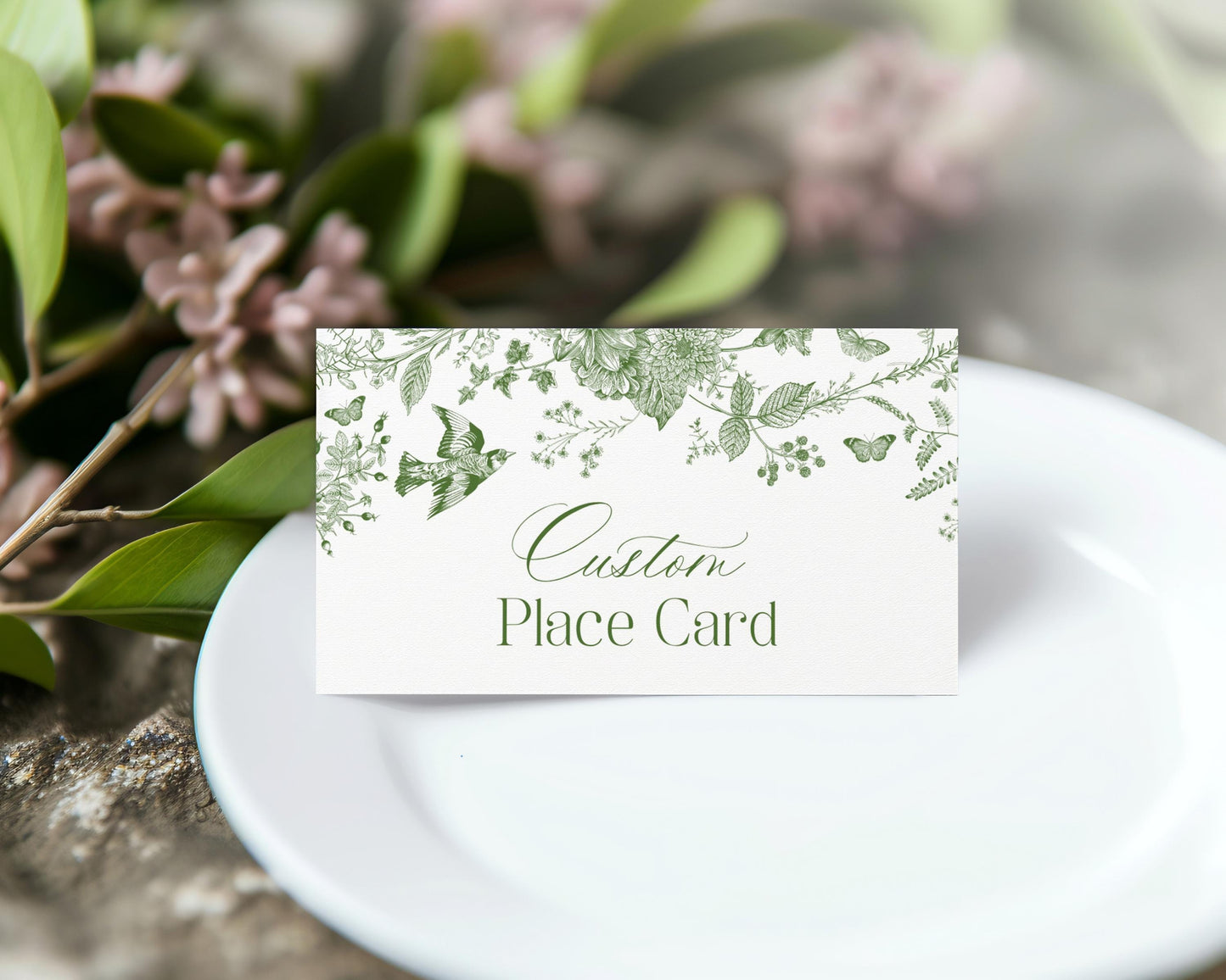 Green Toile De Jouy Wedding Seating Chart Cards Template