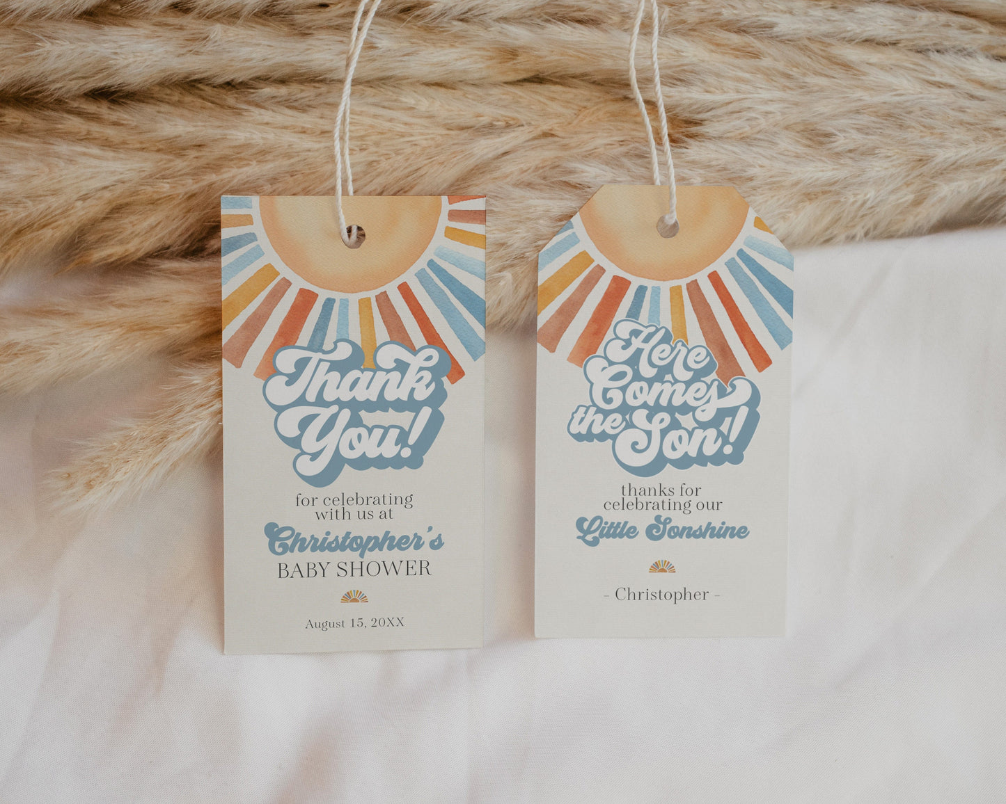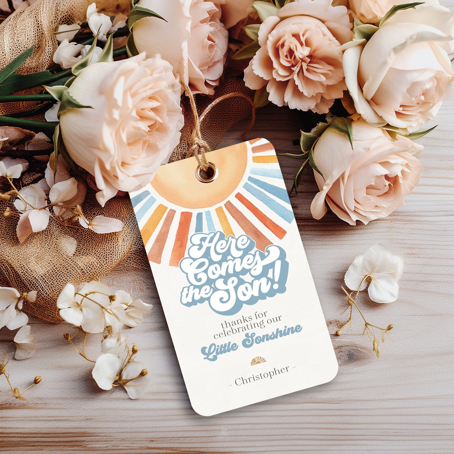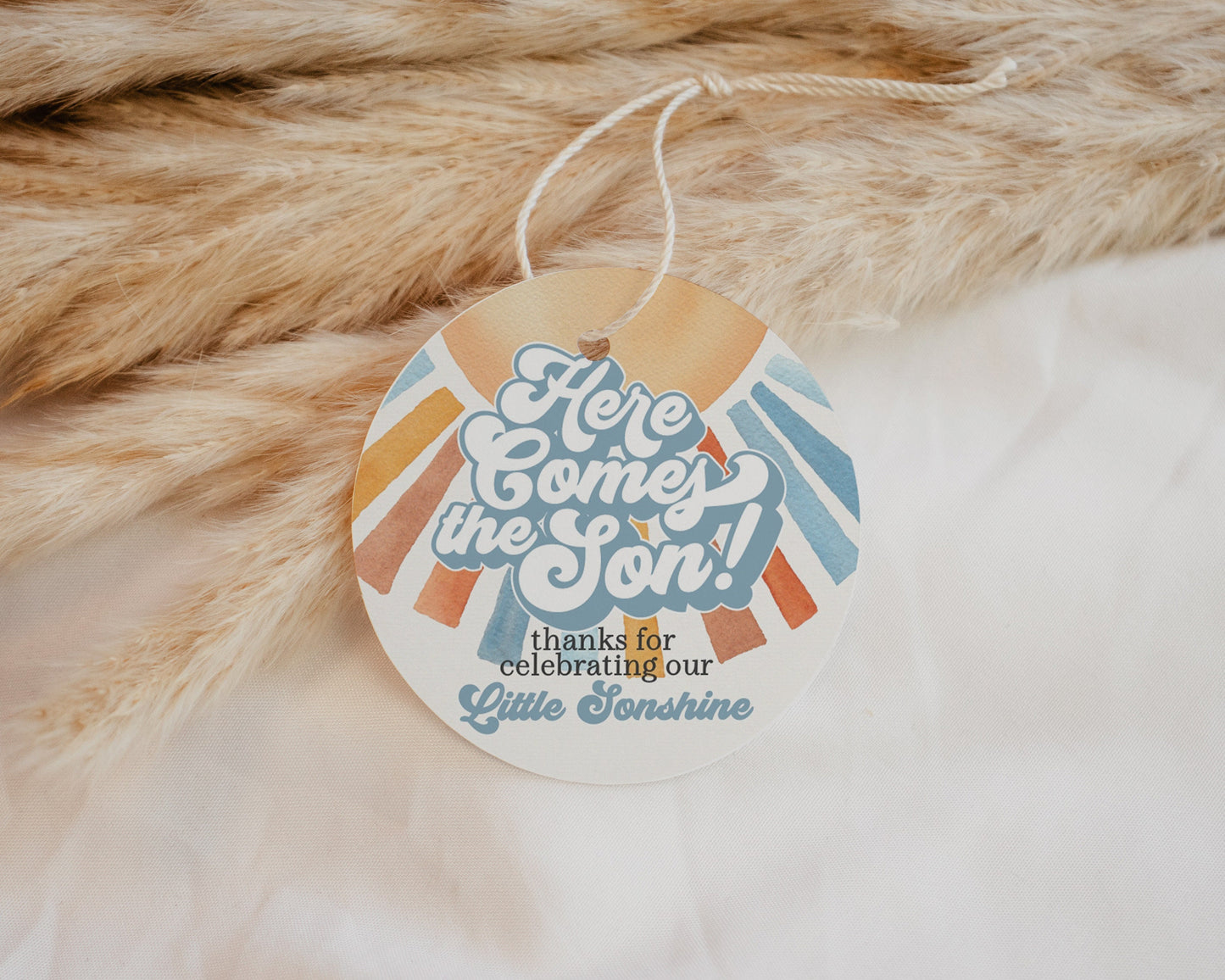 Here Comes The Son Baby Shower Favor Tags Printable Template, Sunshine Baby Sprinkle Decor for Boy Baby Shower Little Ray of Sonshine Party
