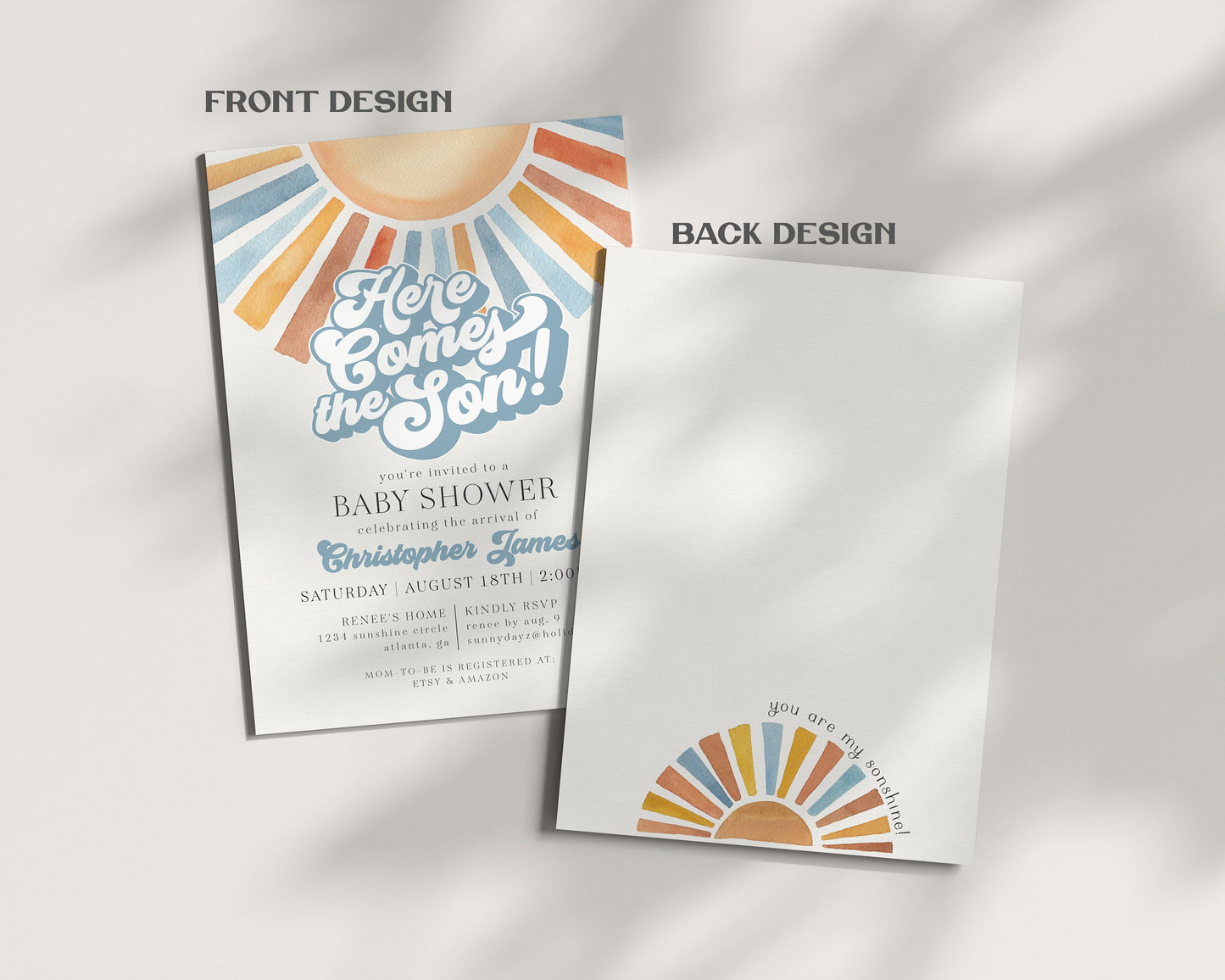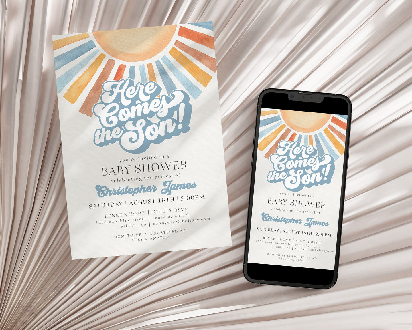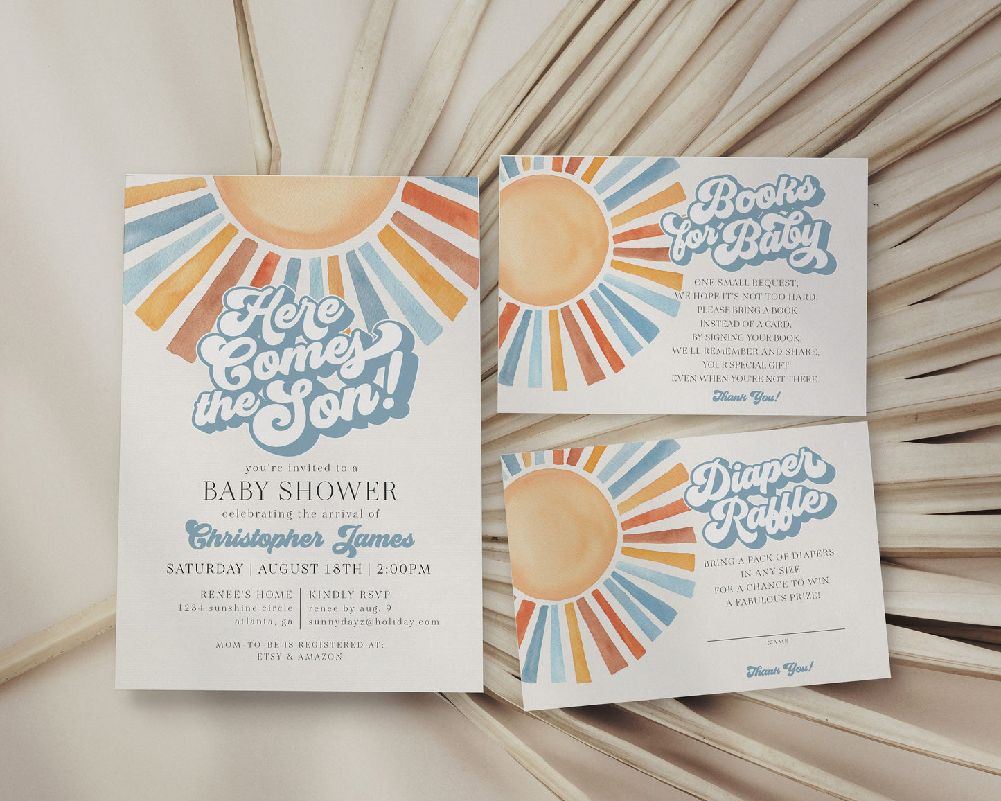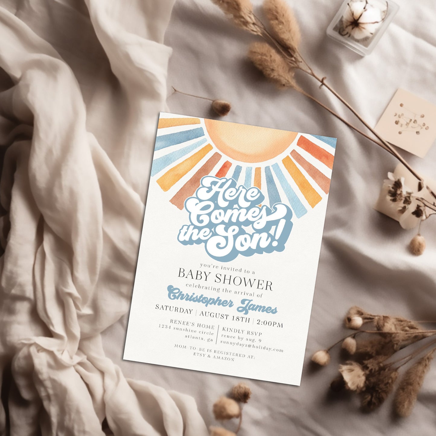 Here Comes The Son Custom Sign Printable Baby Shower Party Decor