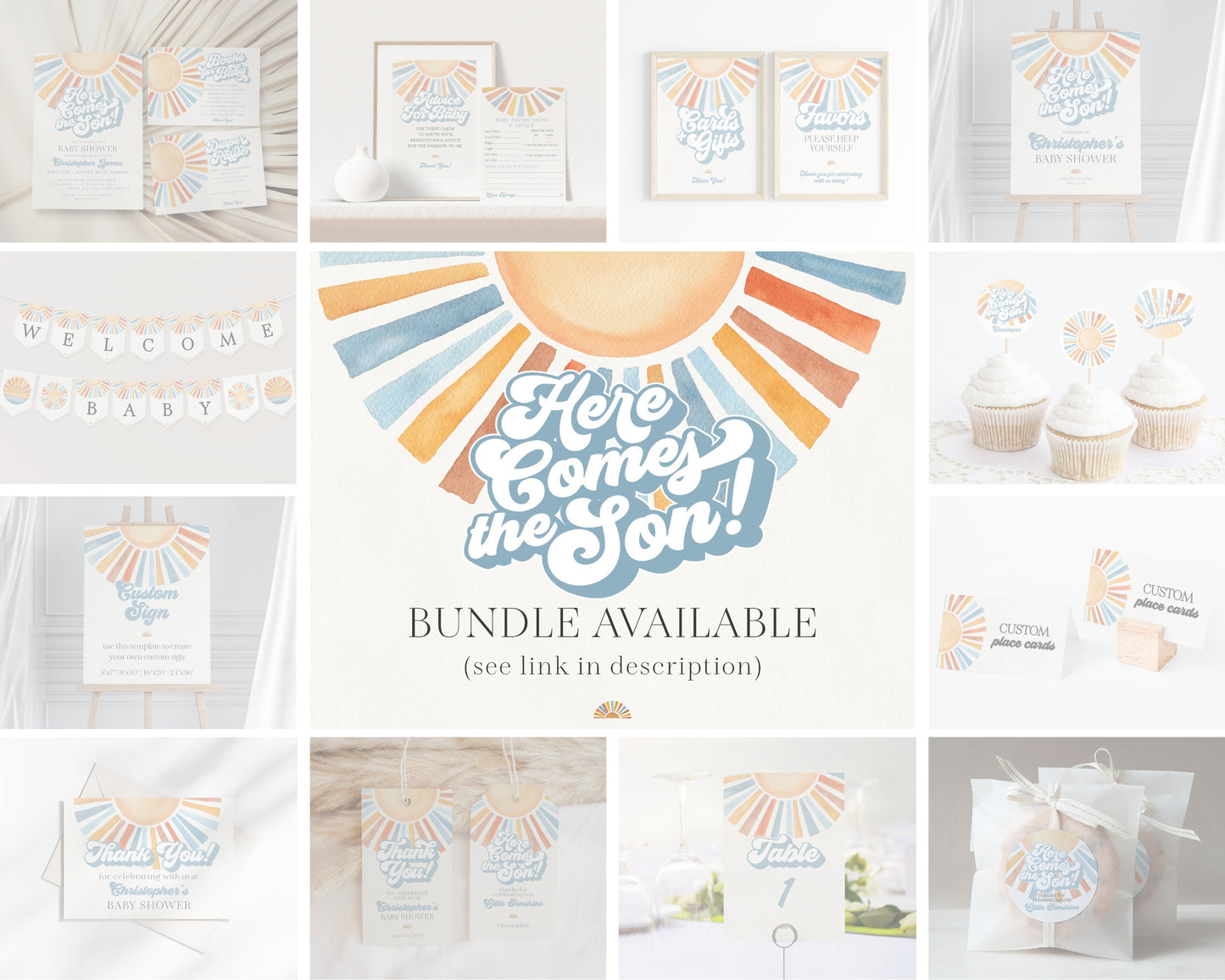 Here Comes The Son Baby Shower Printable Bundle