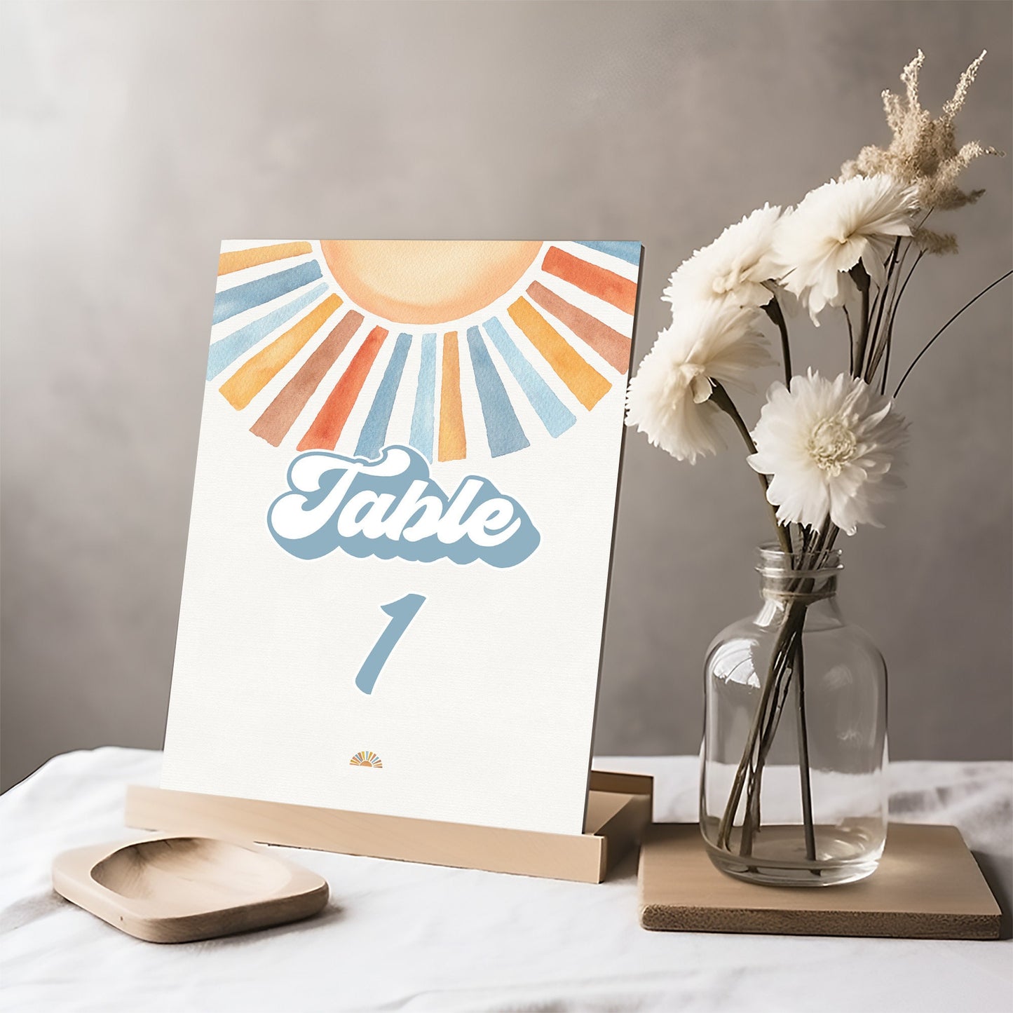 Here Comes The Son Table Number Cards Printable Template, Sunshine Baby Sprinkle Decor for Boy Baby Shower, Little Ray of Sonshine Party