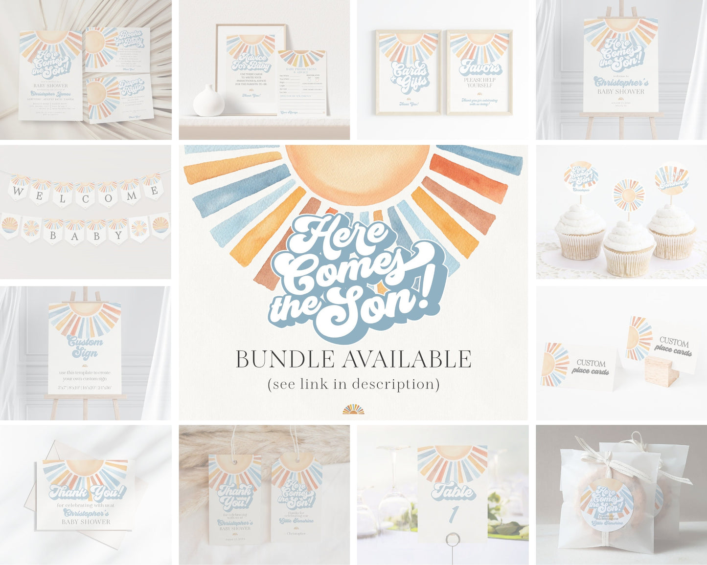 Here Comes The Son Cards & Gifts and Favors Sign Printable Template, Sunshine Baby Sprinkle Decor for Boy Baby Shower Little Ray of Sonshine
